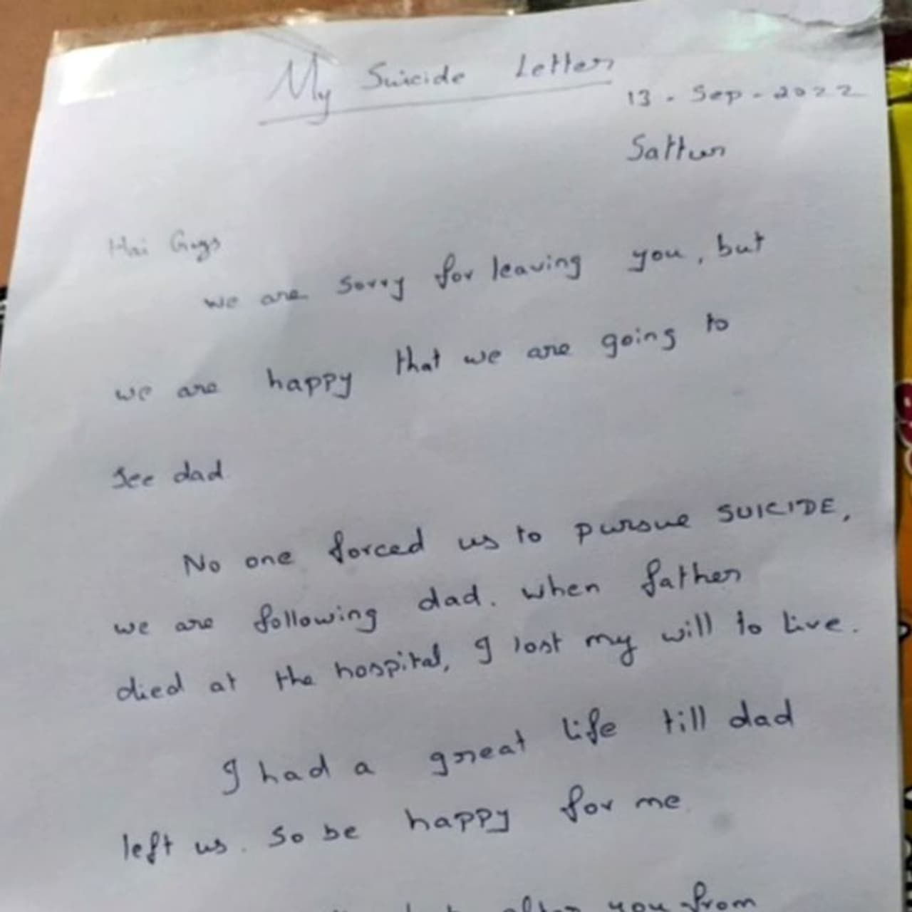 தாய் மகன் இருவரும் தங்களது தற்கொலைக்கு யாரும் காரணம் இல்லை என தனித்தனியே கடிதம் எழுதியுள்ளதை போலீசார் கைப்பற்றியுள்ளனர். அந்த கடிதத்தை போலீசார் கைப்பற்றி, இது குறித்து வழக்கு பதிவு செய்து விசாரணை நடத்தி வருகின்றனர். ஒரே குடும்பத்தை சேர்ந்த 3 பேர் உயிரிழந்த சம்பவம் அப்பகுதியில் பரபரப்பை ஏற்படுத்தி உள்ளது.