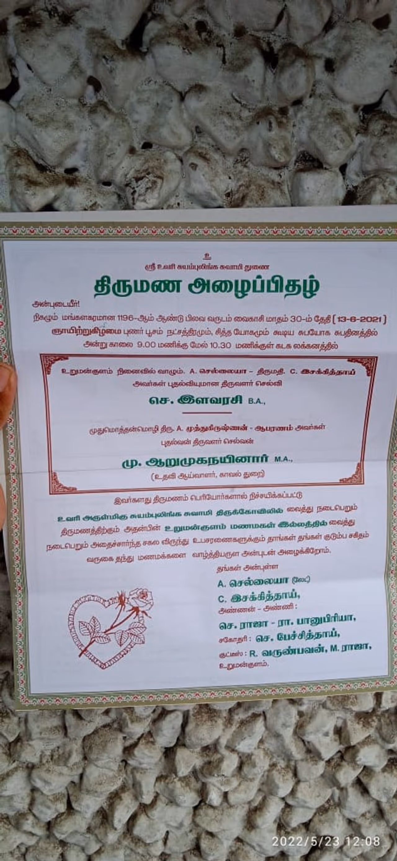 ஆனால் அதற்கு கொஞ்சமும் அலட்டிக் கொள்ளதா அவர்கள், என் மகன் டிஎஸ்பி வரை பதவி உயர வாய்ப்பு இருக்கிறது. உங்களுடைய தகுதி என்ன எங்களுடைய தகுதி என்ன என்று கேட்டு இலவரசியை அவமானப்படுத்தியுள்ளனர். அதே நேரத்தில் தன் மகனுக்கு ஜாதகம் சரியில்லை என்பதால் தோஷம் கழிப்பதற்கான தான் உன்னைத் திருமணம் செய்து கொண்டோம் எனவும் அவர்கள் கூறினர். இதை கேட்டு இளவரசி அதிர்ச்சியடைந்தார் அதே நேரத்தில் காவல் உதவி ஆய்வாளர் ஆறுமுகநயினார் முதலிரவில் நடந்ததை வீடியோ எடுத்து வைத்துக்கொண்டு தன்னை வேறு திருமணம் செய்து கொள்ள வற்புறுத்தி வருவதாக கூறியும், அவருக்கு இந்த விவகாரத்தில் உடந்தையாக இருப்பவர்கள் மீது நடவடிக்கை எடுக்கக்கோரியும் பாதிக்கப்பட்ட புது மனைவி இளவரசி கோவை மாவட்ட ஆட்சியரிடம் இன்று புகார் மனு அளித்தார். குற்றம்சாட்டப்பட்ட காவல் ஆய்வாளர் ஆறுமுகநயினார் தற்போது கோவை தடாகம் காவல் நிலையத்தில் உதவி ஆய்வாளராக பணிபுரிந்து வருகிறார் என்பது குறிப்பிடத்தக்கது.