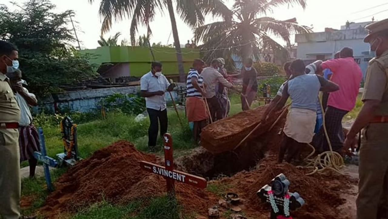 கன்னியாகுமரி மாவட்டம் வெள்ளிச்சந்தை அருகே முட்டம் பகுதியைச் சேர்ந்தவர் பனிபிச்சை. இவருக்கும் அதே பகுதியைச் சேர்ந்த மேகலா (32) என்பவருக்கும் கடந்த 8 ஆண்டுகளுக்கு முன்பு திருமணம் நடந்தது. இவர்களுக்கு 5 வயது மகன் மற்றும் மகள் உள்ளனர். இந்நிலையில், கடந்த மாதம் 17-ம் தேதி மேகலா திடீரென மர்மமான முறையில் வீட்டில் உயிரிழந்து கிடந்தார். மேகலா உடல்நிலை சரியில்லாமல் இறந்துவிட்டதாக அவரது கணவர் பனிப்பிச்சை கூறினார். இதையடுத்து மேகலா உடல் அடக்கம் செய்யப்பட்டது. ஆனால், மேகலா மரணத்தில் சந்தேகம் இருப்பதாக அவரது சகோதரர் காவல் நிலையத்தில் புகார் அளித்தார். இதையடுத்து மேகலாவின் உடல் நேற்று மாலை தோண்டி எடுக்கப்பட்டு, அதே இடத்தில் வைத்து பிரேத பரிசோதனை நடத்தப்பட்டது.