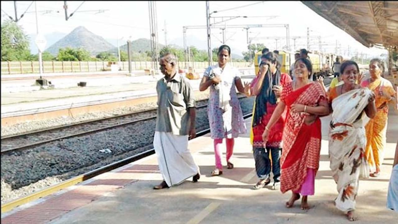 இதற்காக அவர்கள் நேற்று முன்தினம் மதுரையில் இருந்து விழுப்புரம் செல்லும் ரெயிலில் ஏறினர். அந்த ரெயில் திண்டுக்கல் மாவட்டம், கொடைரோடு ரெயில் நிலையத்திற்கு நேற்று அதிகாலை சுமார் 4 மணிக்கு வந்தது. கொடைரோடு ரெயில் நிலையத்தில் இருந்து ரெயில் புறப்பட்டது.