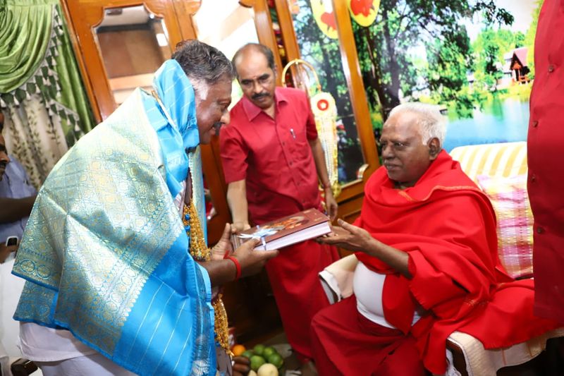 மேலும் அதிமுக வேட்பாளர் மரகதம் குமரவேல்,எஸ்.ஆறுமுகம் ஆகியோரை அறிமுகம் செய்து வைத்து பங்காரு அடிகளாரிடம் பன்னீர் செல்வம் ஆசிபெற்றார். 40 தொகுதிகளிலும் போட்டியிடும் அதிமுக மற்றும் கூட்டணி கட்சி வேட்பாளர்கள் வெற்றி பெற வேண்டி ஆதிபராசக்தி அம்மனுக்கு நெய் தீபம் ஏற்றி பன்னீர் செல்வம் வழிபட்டார். தன்னை தேடிவந்த ஓபிஎஸ்க்கு ஆசி வழங்கியிருக்கிறார் ஆதிபராசக்தி அடிகளார்.