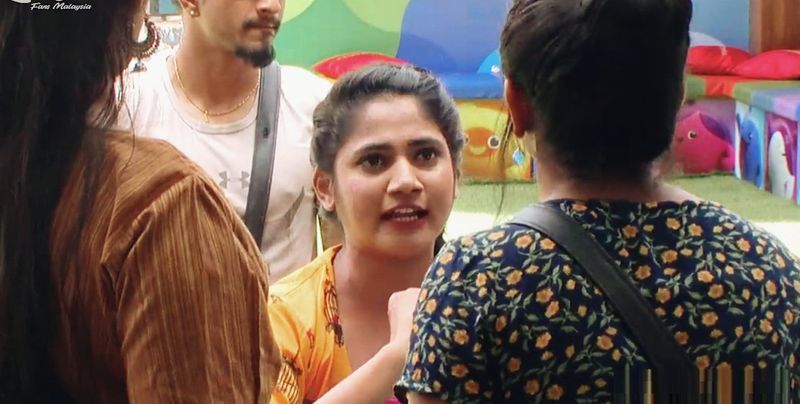 அப்போது மௌன விரதத்தில் இருந்த ஜாங்கிரி மதுமிதா (புளிப்பு வித்த), ஆண்கள் தான் பெண்களை பயன்படுத்திக் கொள்கிறார்கள் என்று மீண்டும் அதே பிரச்சனையை தர்ஷனிடம் பேச, நீங்க பழைய குப்பையை கெளறாதிங்க? நீங்க பாத்தீங்களா அந்த பொண்ணுங்க உங்ககிட்ட சொன்னார்களா? அவங்களே கூலா இருக்காங்க நீங்க என்னன்னா சாண்டி அண்ணனை, கைவினை டார்கெட் பண்ணி பேசுறீங்களே என ஜாங்கிரியை பிச்சு கடாசினார் தர்ஷன். பஞ்சாயத்து பண்ண சேரப்பாவுக்கும் பயங்கர நோஸ்கட் ஆனது.