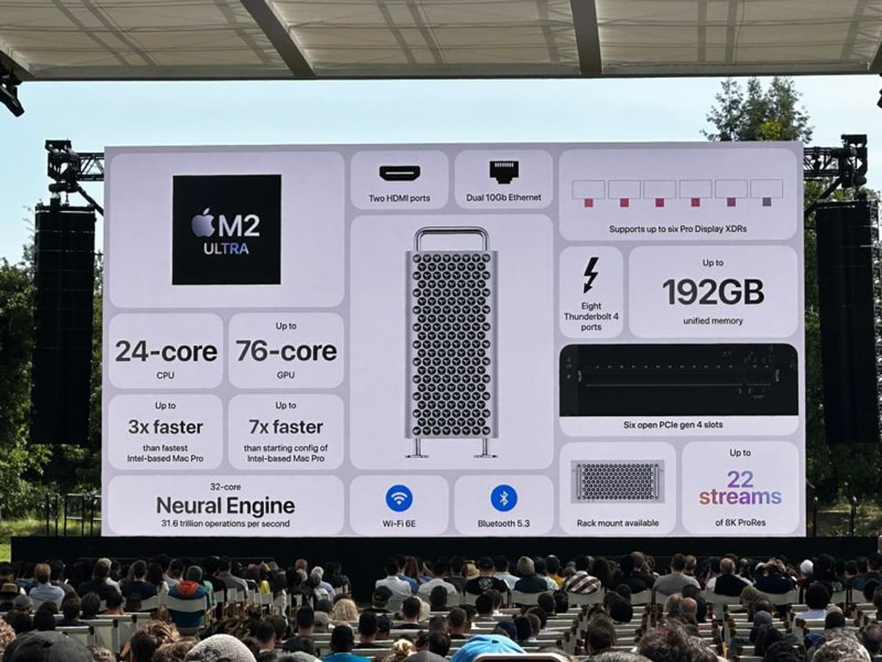 மேக் ஸ்டுடியோ சக்திவாய்ந்த இன்டெல் பிராசஸர் அடிப்படையிலான 27 இன்ச் ஐ மேக் 1 (iMac 1) லேப்டாப்பை விட 6 மடங்கு வேகமானது. மேக் ப்ரோ, இப்போது M2 அல்ட்ரா பிராசஸரைக் கொண்டுள்ளது. இது இன்டெல் பிராசஸரைக் கொண்ட பழைய மாடல் மேக் ப்ரோவை விட 3 மடங்கு வேகமானது. 192 ஜிபி வரை மெமரியுடன் கூடிய மேக் ப்ரோ M2 அல்ட்ரா மற்றும் மேக் ஸ்டுடியோ ஆகியவை மேம்பட்ட கிராபிக்ஸ் கார்டுகளைக் கொண்டுள்ளன.
