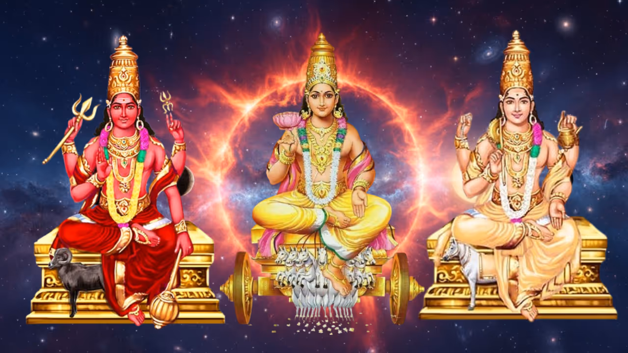 2026 ஆம் ஆண்டு ஜனவரி மாதம் மகர ராசியில் பல அபூர்வ கிரக மாற்றங்கள் நடைபெற்று வருகின்றன. தைரியம் மற்றும் வீரத்தின் காரகராக விளங்கும் செவ்வாய் பகவான் ஜனவரி 16, 2026 தனது உச்ச ராசியான மகரத்திற்குள் நுழைந்திருக்கிறார். ஏற்கனவே மகர ராசியில் சூரியன் மற்றும் சுக்கிரன் அமர்ந்துள்ள நிலையில் செவ்வாய் பகவானின் வருகையால் திரிகிரக யோகம் உருவாகிறது. மேலும் செவ்வாய் தனது உச்ச வீடான மகரத்திற்குள் நுழைவதால் ருச்சக ராஜயோகமும் உருவாகிறது. இது எந்தெந்த ராசிக்காரர்களுக்கு அதிர்ஷ்டத்தை வழங்க இருக்கிறது என்பது குறித்து இங்கு பார்க்கலாம்.