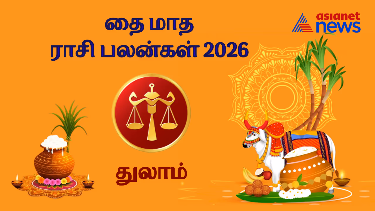 - தை மாத ராசி பலன் 2026: குருவின் அருளால் துலாம் ராசிக்கு கொட்டும் லாபம்.! தை மாதத்துடன் எல்லா பிரச்சனைகளும் முடியப்போகுது.!