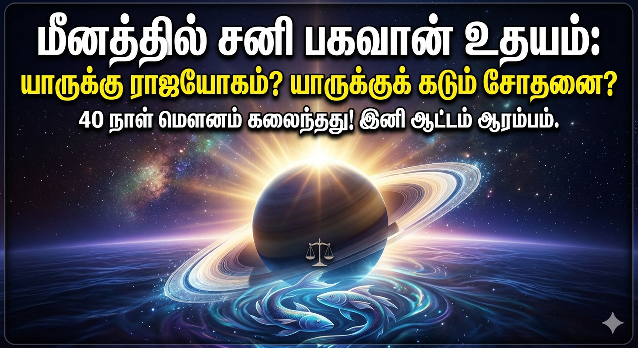 நாற்பது நாள் மௌனம் கலைந்து, மீன ராசியில் முழு பலத்துடன் கண்விழித்தார் நீதிதேவன் சனி பகவான்; இனி உங்கள் உழைப்புக்குக் கிடைக்கும் பலன்கள் அதிரடியாக மாறப்போகின்றன.