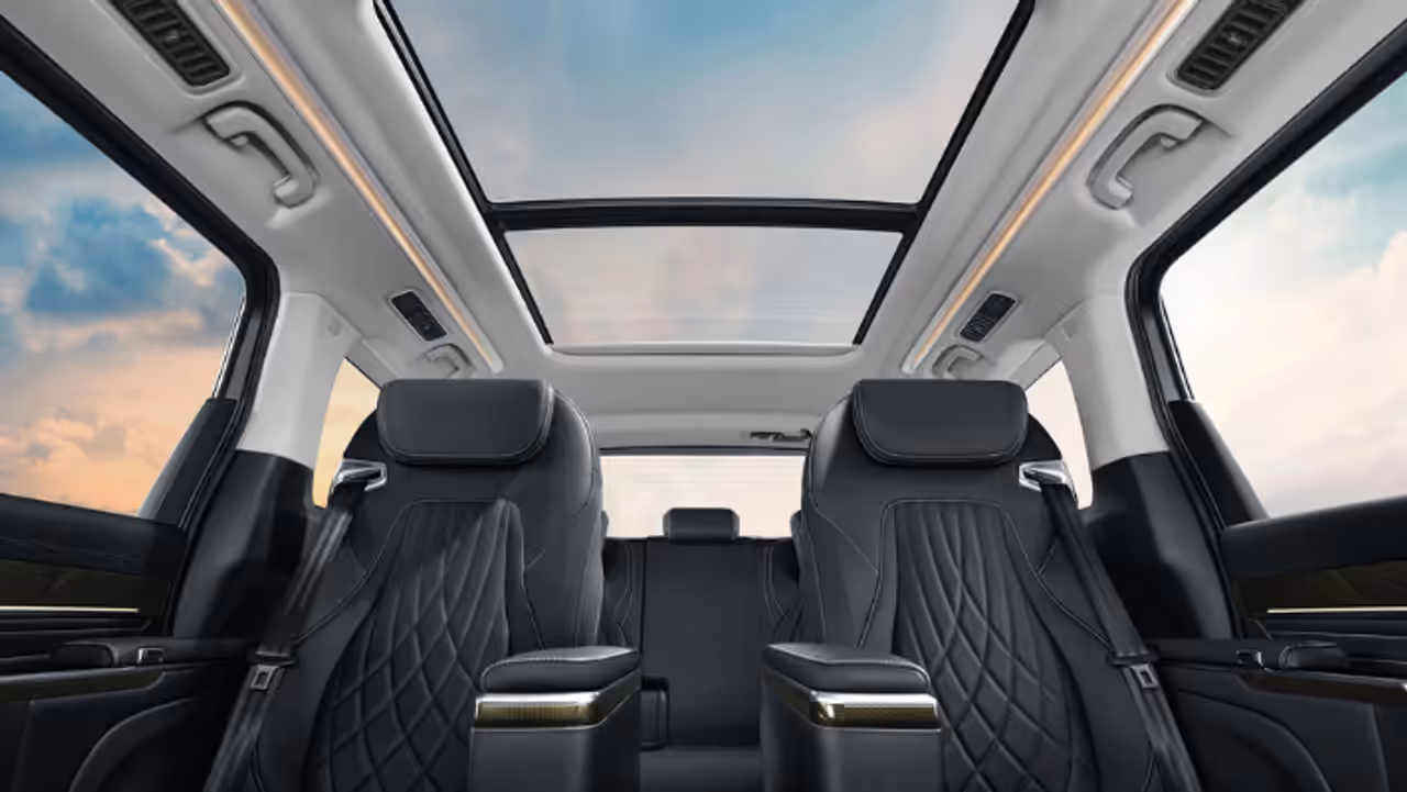 அதன் வசதிக்கு கூடுதலாக, MG M9 இரண்டு கப் ஹோல்டர்கள், அண்டர்-அர்ம் ஸ்டோரேஜ் மற்றும் வயர்லெஸ் ஸ்மார்ட்போன் சார்ஜர் ஆகியவற்றை உள்ளடக்கிய மிதக்கும் மைய கன்சோலைக் கொண்டுள்ளது. இந்த கார் தொடு-கொள்ளளவு HVAC கட்டுப்பாடுகளையும் உள்ளடக்கியது, அதன் எதிர்கால ஈர்ப்பை மேம்படுத்துகிறது.