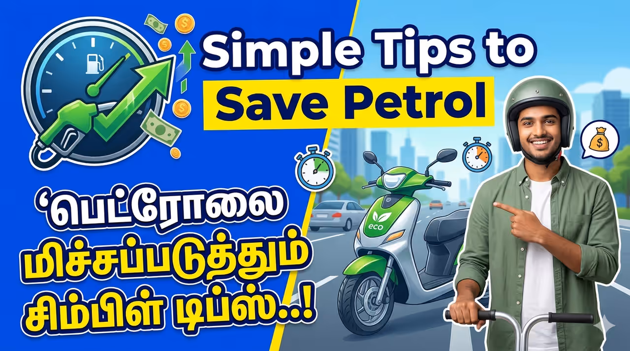 இந்த எல்லா வழிகளையும் நீங்க கடைப்பிடிச்சா, மாசம் ₹2000-₹3000 வரைக்கும் ஈஸியா சேமிக்க முடியும். நீண்ட காலத்துல இது ஒரு பெரிய தொகையா மாறி, உங்க பட்ஜெட்டுக்கு ரொம்ப உதவியா இருக்கும். பொறுப்புத் துறப்பு: இந்தக் கட்டுரை பொதுவான தகவலுக்காக மட்டுமே. சொல்லப்பட்ட வழிகள், பொதுவான ஓட்டும் பழக்கங்கள் மற்றும் அனுபவத்தை அடிப்படையாகக் கொண்டவை. உண்மையான சேமிப்பு உங்கள் வண்டியின் நிலை, ஓட்டும் விதம், போக்குவரத்து மற்றும் சாலை நிலைமைகளைப் பொறுத்து மாறலாம். தொழில்நுட்ப ஆலோசனைக்கு அங்கீகரிக்கப்பட்ட சர்வீஸ் சென்டரை அணுகவும்.