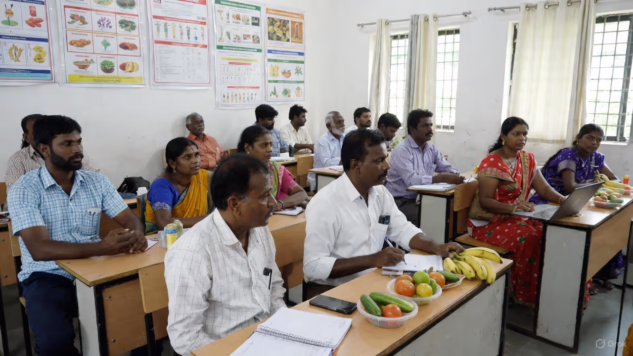 தேனி CENDECT வேளாண் அறிவியல் நிலையத்தில் (KVK), வரும் 2026 ஜனவரி 12 முதல் 16 வரை 'பழங்கள் மற்றும் காய்கறிகளைப் பதப்படுத்துதல்' குறித்த ஐந்து நாள் பயிற்சி நடைபெறுகிறது. அரசு நிதியுதவியுடன் நடத்தப்படும் இப்பயிற்சி முற்றிலும் இலவசமாகும். மதிப்புக் கூட்டப்பட்ட பொருட்கள் தயாரிப்பு மற்றும் தொழில்முனைவோர் ஆலோசனைகளை வழங்க உள்ள இந்த அரிய வாய்ப்பை விவசாயிகள் மற்றும் ஆர்வமுள்ளவர்கள் பயன்படுத்திப் பயனடையலாம்.