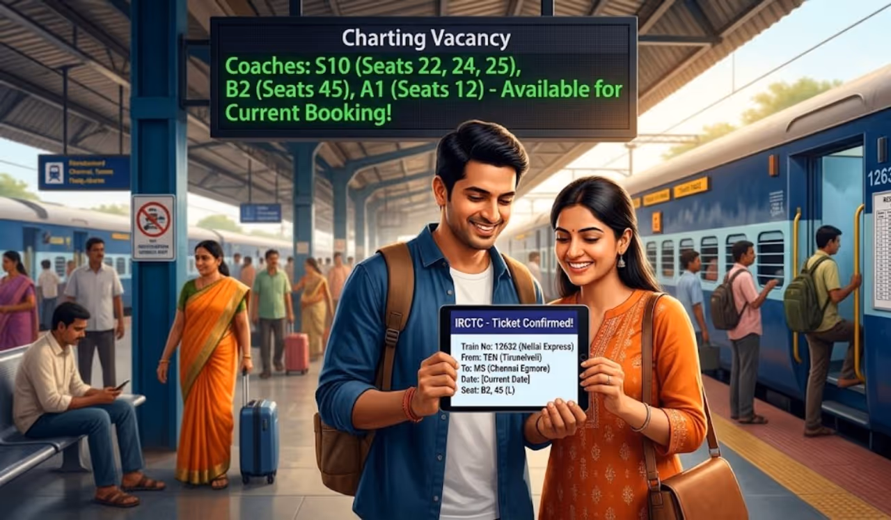 ஒரு மாதத்துக்கு முன்பே டிக்கெட் செய்தாலும் கன்பார்ம் டிக்கெட் கிடைக்காமல் வெயிட்டிங் லிஸ்ட் டிக்கெட் புக் செய்தே கன்பார்ம் செய்ய வேண்டிய நிலை இருந்து வந்தது. இதிலும் மிக முக்கியமாக அவசரமாக பயணம் மேற்கொள்பவர்கள் கடைசி நேரத்தில் கன்பார்ம் டிக்கெட் பெறுவது கடினமாக இருந்து வந்தது. இந்த நிலையில், கடைசி நேரத்தில் அதாவது சார்ட் போட்ட பிறகும் டிக்கெட் முன்பதிவு செய்யும் வகையில் இந்தியன் ரயில்வே சூப்பர் அம்சத்தை கொண்டு வந்துள்ளது.