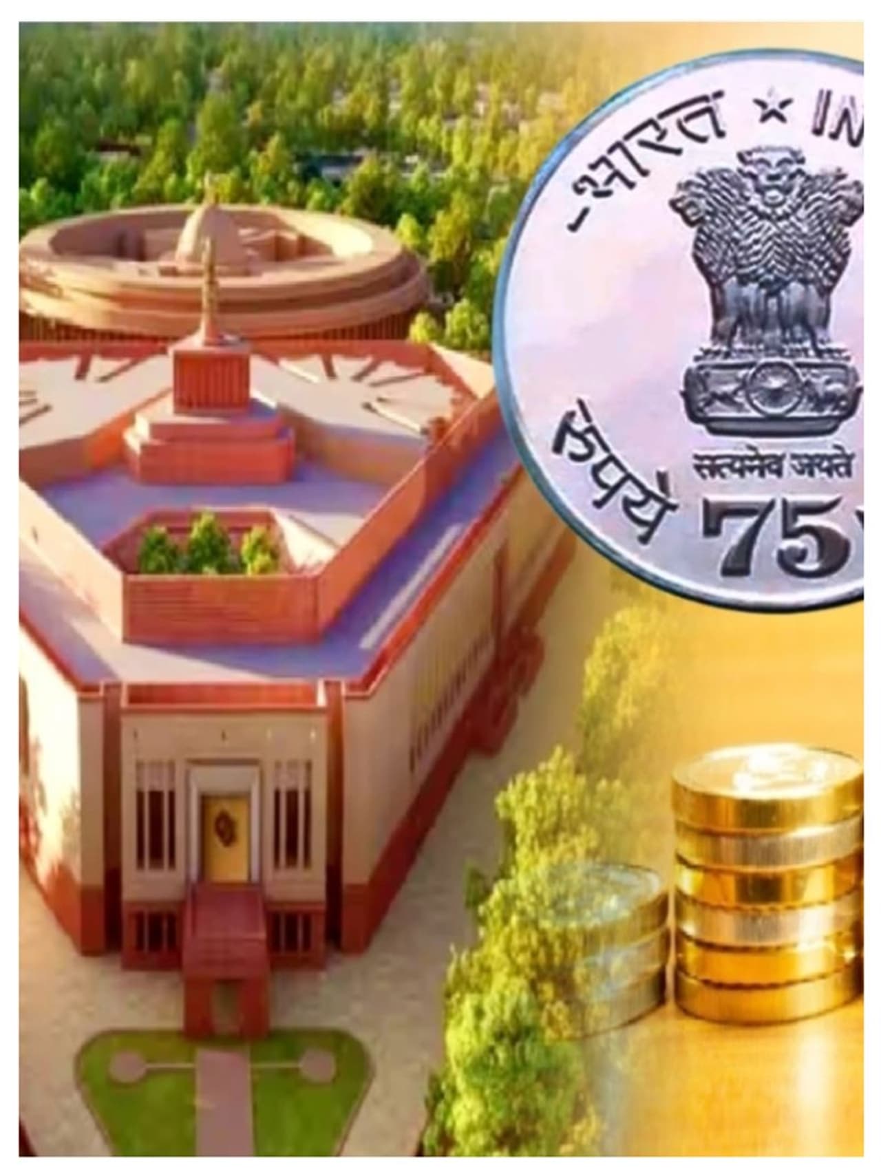 டெல்லியில் புதிய நாடாளுமன்றக் கட்டடத்தை பிரதமா் நரேந்திர மோடி ஞாயிற்றுக்கிழமை (மே 28) திறந்து வைக்க உள்ளாா். இதைக் குறிக்கும் வகையில், 75 ரூபாய் சிறப்பு நாணயம் வெளியிடப்படவுள்ளதாக, மத்திய நிதியமைச்சகத்தின்கீழ் செயல்படும் பொருளாதார விவகாரங்கள் துறை அறிவிப்பு வெளியிட்டது.
