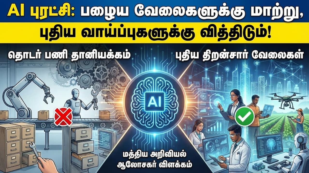AI AI தொழில்நுட்பம் பழைய வேலைகளை மாற்றினாலும், வேளாண்மை மற்றும் நிதித்துறையில் புதிய வேலைவாய்ப்புகளை உருவாக்கும் என்று மத்திய அறிவியல் ஆலோசகர் அஜய் குமார் சூட் தெரிவித்துள்ளார்.