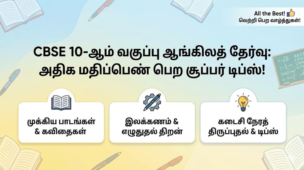 - CBSE 10-ஆம் வகுப்பு ஆங்கிலத் தேர்வு: முக்கிய பாடங்கள், இலக்கணம் மற்றும் அதிக மதிப்பெண் பெற டிப்ஸ்!
