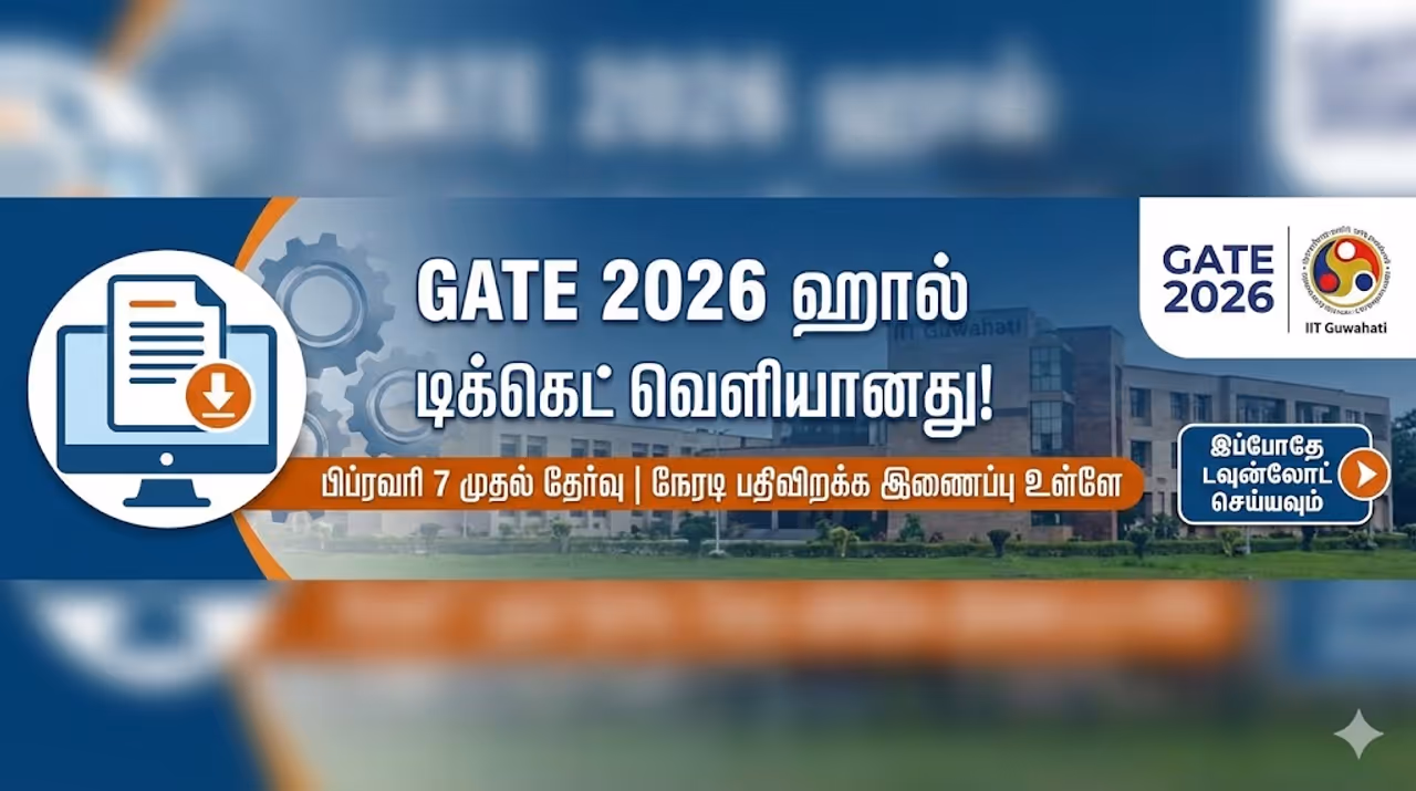 GATE 2026 ஐஐடி கவுகாத்தி GATE 2026 தேர்வுக்கான ஹால் டிக்கெட்டை வெளியிட்டுள்ளது. பிப்ரவரி 7 ஆம் தேதி தேர்வு தொடங்குகிறது. ஹால் டிக்கெட்டை டவுன்லோட் செய்யும் முறை இதோ.