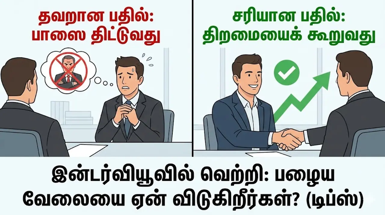 - இன்டர்வியூ டிப்ஸ்: "பழைய வேலையை ஏன் விடுகிறீர்கள்?" என்று கேட்டால் இப்படி பதில் சொல்லுங்கள் - வேலை நிச்சயம்!