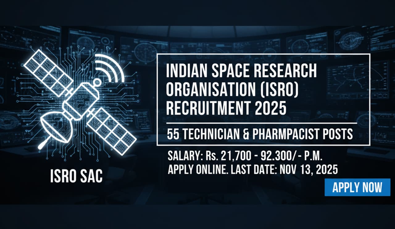 இந்தியாவின் விண்வெளி ஆராய்ச்சிக் கனவுகளுக்கு உயிரூட்டும் இந்திய விண்வெளி ஆராய்ச்சி மையத்தின் (ISRO) கீழ் இயங்கும் Space Applications Centre (SAC) பிரிவில் காலியாக உள்ள தொழில்நுட்ப மற்றும் மருத்துவப் பணியிடங்களை நிரப்புவதற்கான முக்கிய அறிவிப்பு வெளியிடப்பட்டுள்ளது. விண்ணப்பப் படிவங்கள் அக்டோபர் 13, 2025 அன்று தொடங்கி, நவம்பர் 13, 2025 அன்று முடிவடைகின்றன. மொத்தமாக 55 காலியிடங்கள் அறிவிக்கப்பட்டுள்ளன.