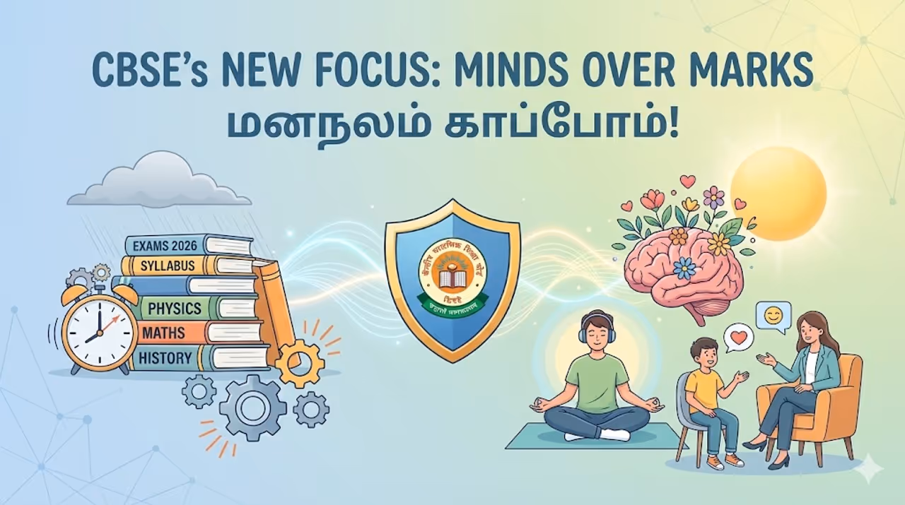 கல்வி என்பது வெறும் புத்தகங்களைப் படிப்பது மட்டுமல்ல, ஒரு மாணவனின் முழுமையான வளர்ச்சியும் சார்ந்தது என்பதை உணர்ந்துள்ள CBSE, பள்ளிகளுக்கு ஒரு முக்கிய சுற்றறிக்கையை அனுப்பியுள்ளது. அதில், வரவிருக்கும் தேர்வுகளுக்கு முன்பாக மாணவர்களின் மனநலம் (Mental Health) மற்றும் ஆரோக்கியத்தில் அதிக கவனம் செலுத்த வேண்டும் என்று கறாராகத் தெரிவித்துள்ளது.