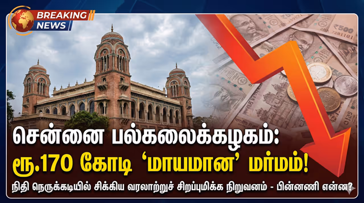 Madras University துணைவேந்தர் இல்லாத நிலையில் சென்னை பல்கலைக்கழக மூலதன நிதியில் ரூ.170 கோடி கரைந்தது. நிதி நெருக்கடியால் பல்கலைக்கழகத்தின் எதிர்காலம் கேள்விக்குறி.