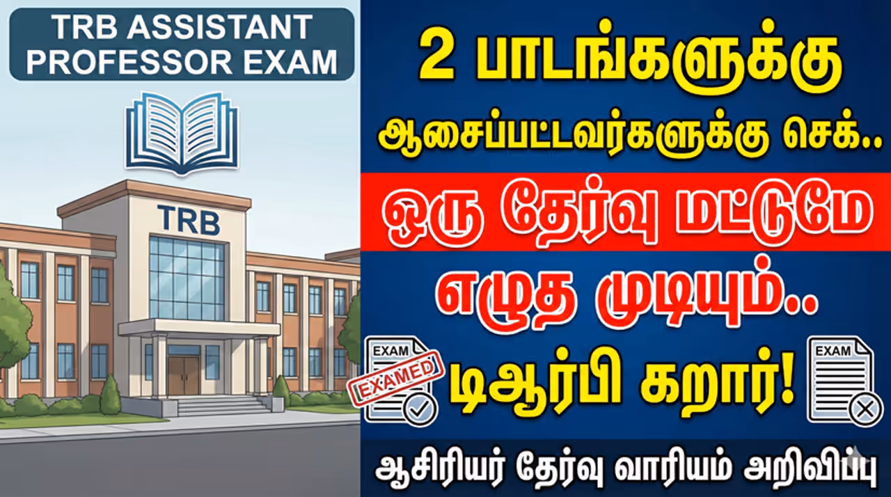 - TN TRB Assistant Professor Exam: உதவிப் பேராசிரியர் தேர்வு.. கடைசி நேரத்தில் வந்த முக்கிய தகவல்.. மிஸ் பண்ணிடாதீங்க!