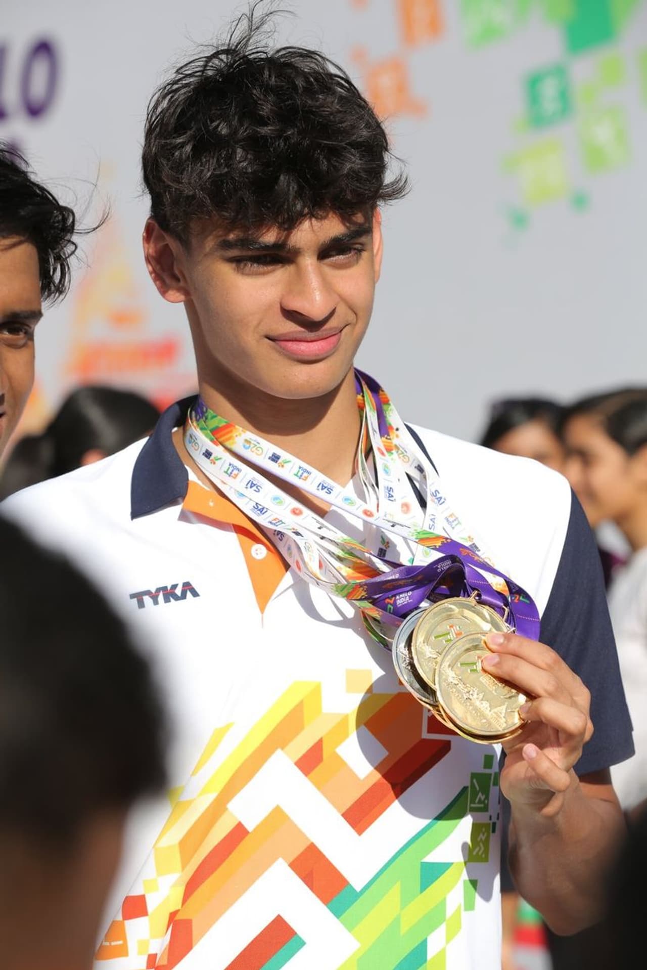நடிகர் மாதவனை திரையுலகில் மிகவும் பிரபலம் என்றால், இவரின் மகன் வேதாந்த் விளையாட்டு துறையில் மிகவும் பிரபலம். ஸ்டேட் மற்றும் இன்டர்நெஷனல் ஸ்விம்மிங் விளையாட்டு போட்டிகளில் கலந்து கொள்ளும் இவர்,கேலோ இந்தியா யூத் கேம்ஸ் 2022ல் பல பதக்கங்களை வென்றுள்ளார் என்ற செய்தியை நடிகர் மாதவன் பெருமிதத்தோடு சமூக வலைத்தளத்தில் ரசிகர்களுடன் பகிர்ந்து கொண்டுள்ளார்.