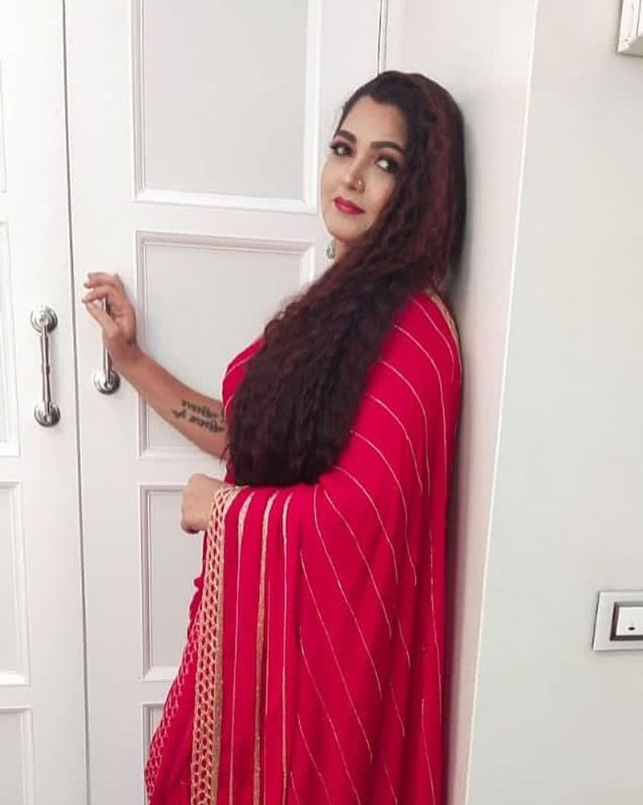 தனக்கு ஏற்ற மாடர்ன் உடைகள் மற்றும், சேலை அணிந்து அழகில் வசீகரிக்கிறார். அந்த வகையில் தற்போது சிவப்பு நிற புடவையில், ஸ்டாபெர்ரி பழம் போல் ஜொலிக்கும் புகைப்படத்தை வெளியிட்டு ஒட்டு மொத்த ரசிகர்களின் கவனத்தையும் ஈர்த்துள்ளார். இந்த புகைப்படம் தற்போது வைரலாக பார்க்கப்பட்டு வருகிறது.