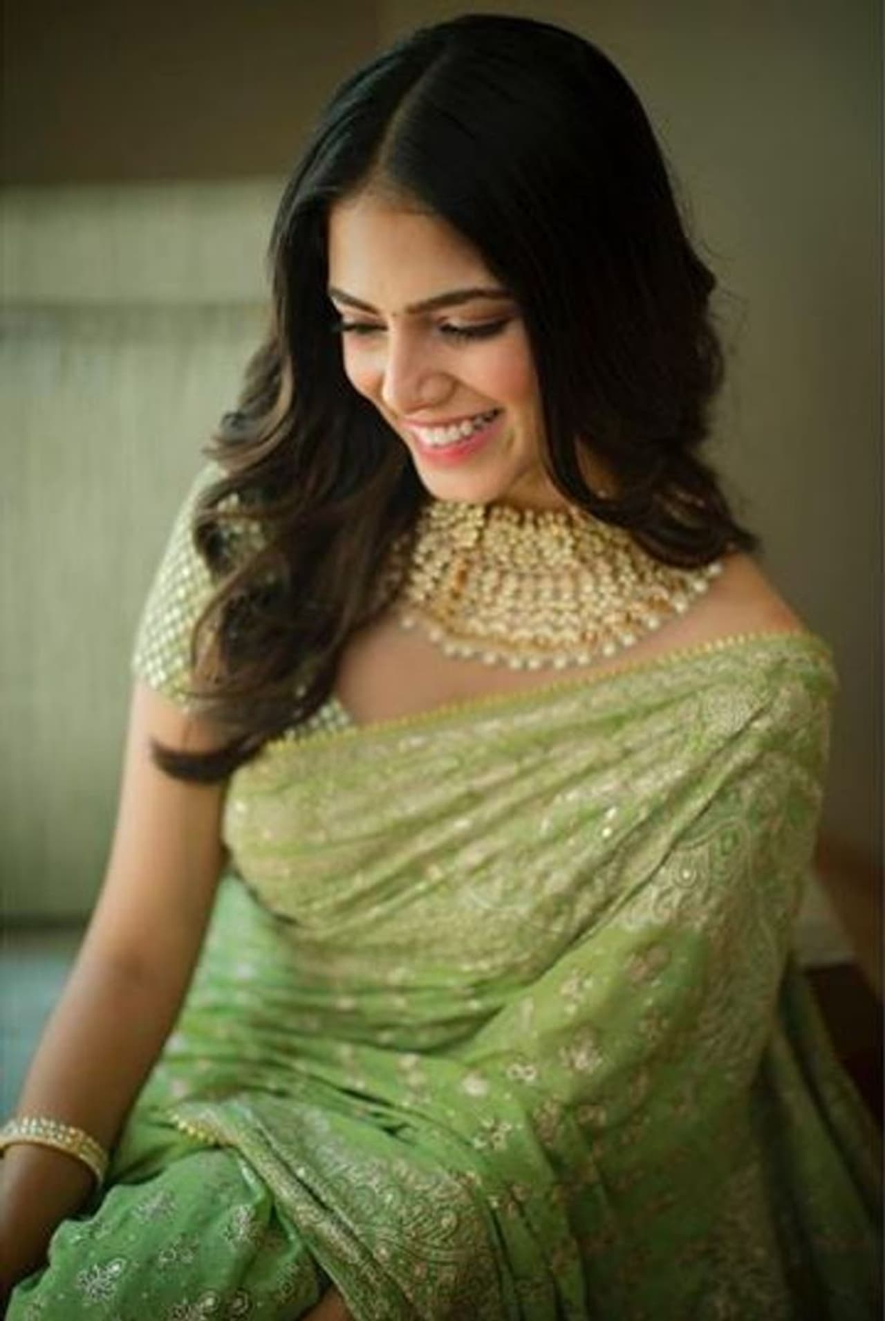 பார்த்தாலே பற்றி கொள்ளும் அழகு... பச்சை நிற புடவையில் தளபதி பட நாயகி 'மாளவிகா மோகன்' கொடுத்த விதவிதமான போஸ்.!