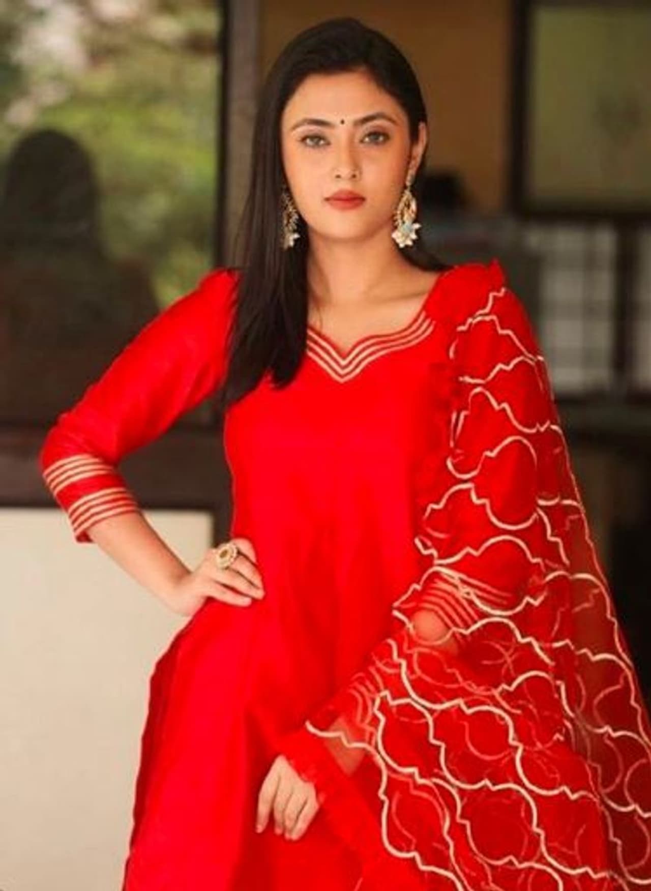 ரெட் கலர் சல்வாரில் கலக்கல்