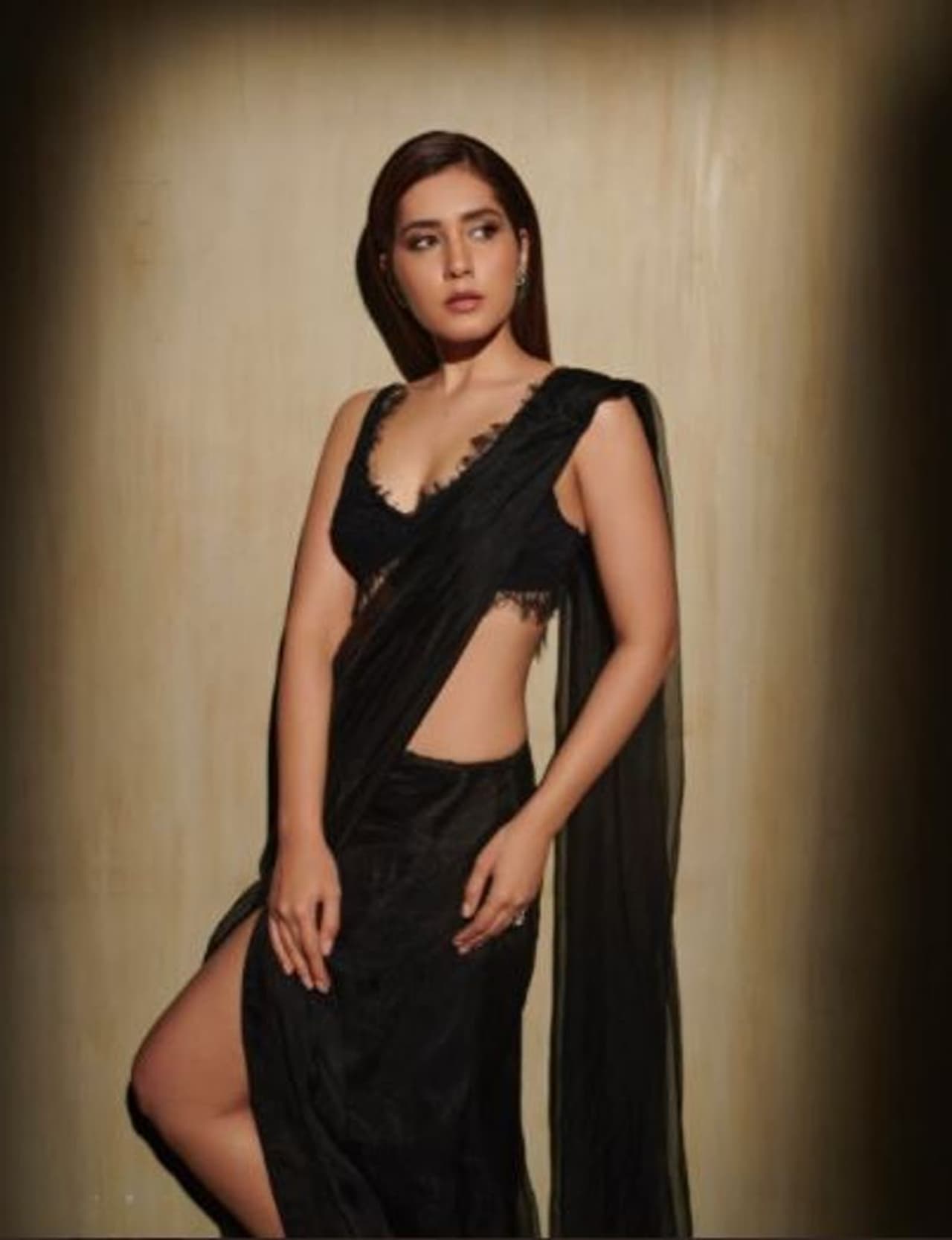 Raashii Khanna: ஜாக்கெட் போடாமல் சேலை கட்டுவது பழசு! தொடையை காட்டியபடி புடவையில் தூள் கிளப்பும் ராஷி கண்ணா!