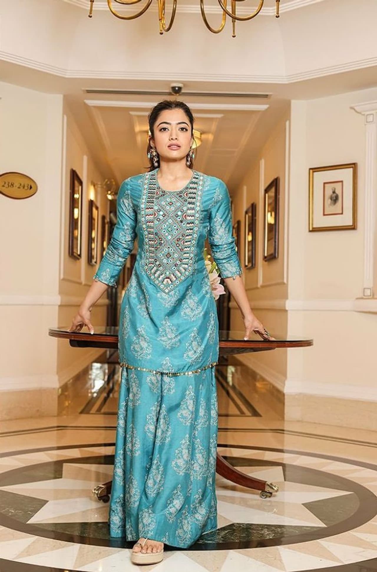 நடிகை ராஷ்மிக்கா தற்போது நீல நிற palazzo உடையில், தினுசு தினுசாக கொடுத்துள்ள போஸ் ரசிகர்களால் அதிகம் பார்த்து ரசிக்கப்பட்டு வருகிறது.