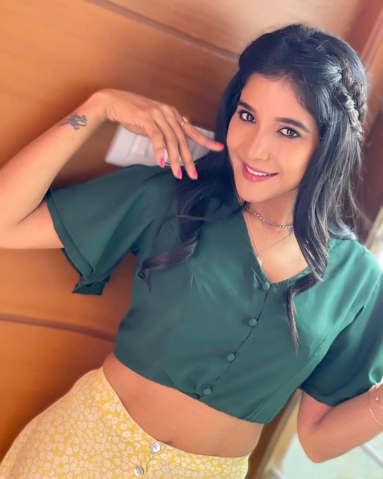 இந்நிலையில் தற்போது பச்சை நிற கிராப் டாப் மற்றும் மஞ்சள் நிற குட்டை ஸ்கர்ட்டில் வெளியிட்டுள்ள புகைப்படம் தற்போது வேற லெவெலுக்கு ரசிக்கப்பட்டு வருகிறது.