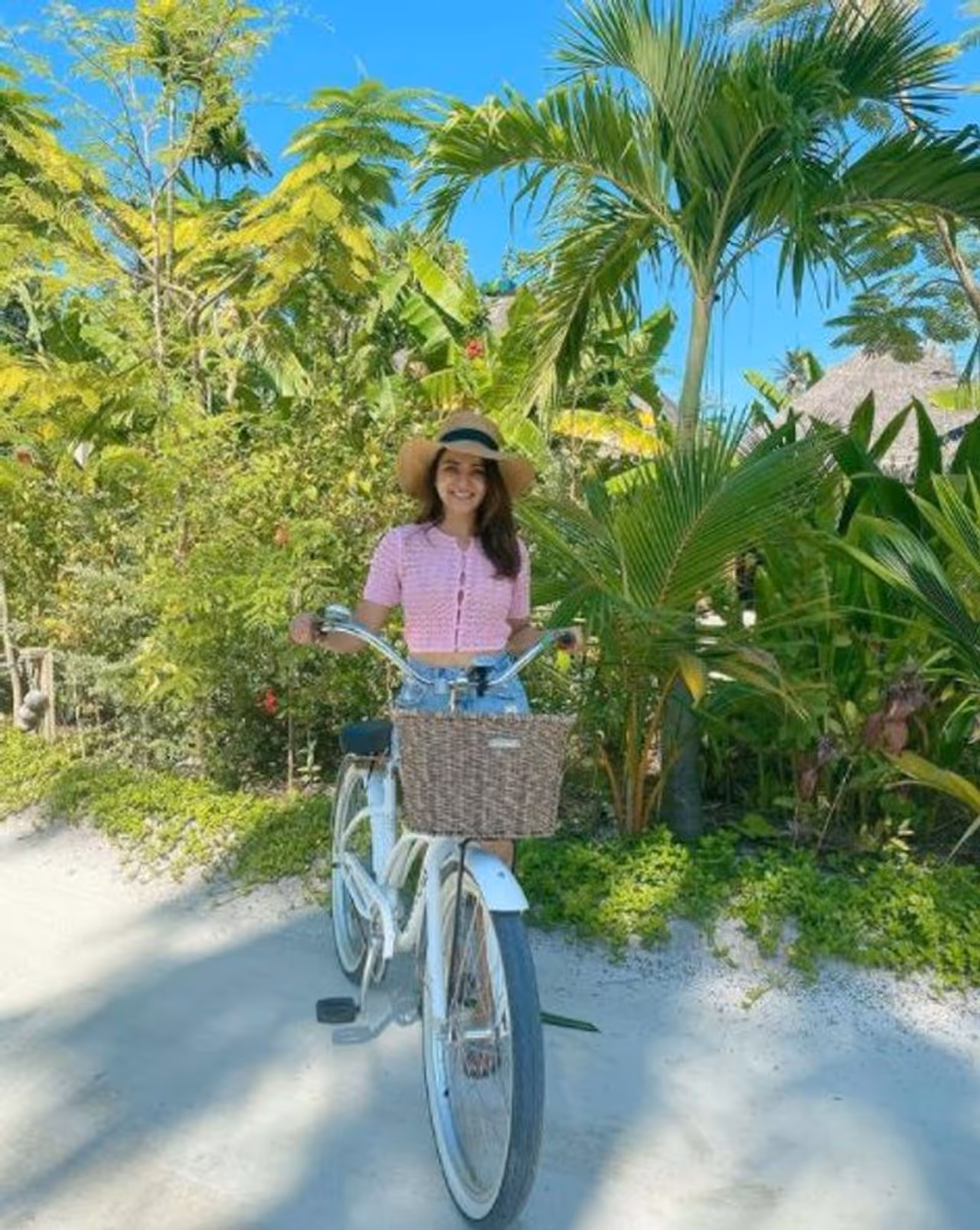 மெல்லிய உடையில் மாலத்தீவில் அழகை ரசித்துக்கொண்டிருக்கும் சமந்தா