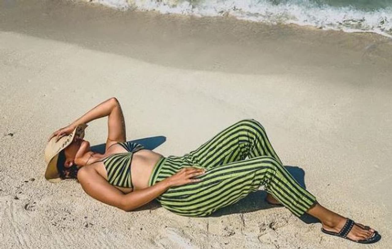 கடற்கரையில் படுத்து ஹாய்யாக போஸ் கொடுக்கும் டாப்ஸி