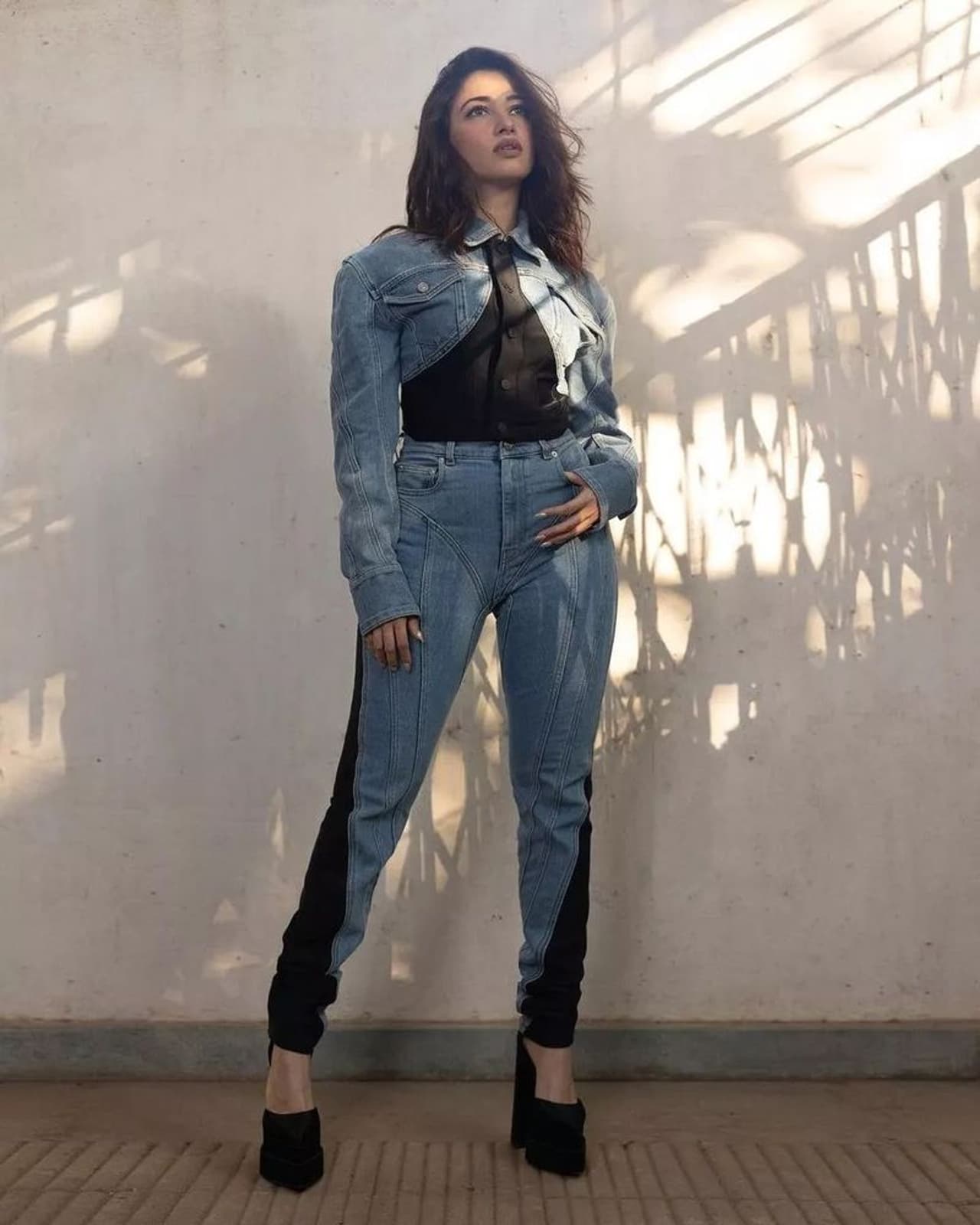 வித்தியாசமான அவுட் பிட்டில்... மொத்த அழகையும் காட்டி ரசிகர்கள் ஹார்ட் பீட்டை எகிற வைத்த தமன்னா! ஹாட் போட்டோஸ்!
