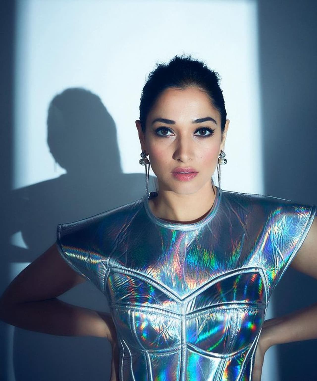 - Tamannaah Bhatia: வேற லெவல் ஃபேஷன்! உடலோடு ஒட்டி இருக்கும் சில்வர் நிற உடையில்... ஐயன் லேடியாக மாறிய தமன்னா!