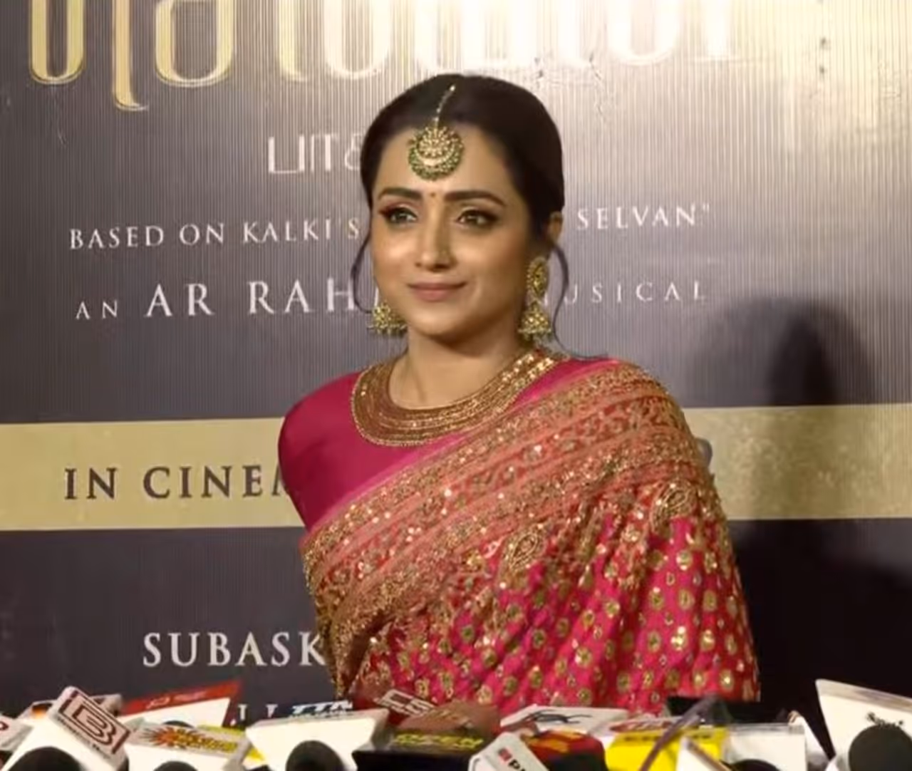 பொன்னியின் செல்வன் படத்தின் இசை வெளியீட்டு விழா சென்னையில் நடைபெற்று வருகிறது. இப்படத்தில் குந்தவையாக நடித்துள்ள நடிகை திரிஷாவும் இந்த விழாவில் கலந்துகொண்டார்.