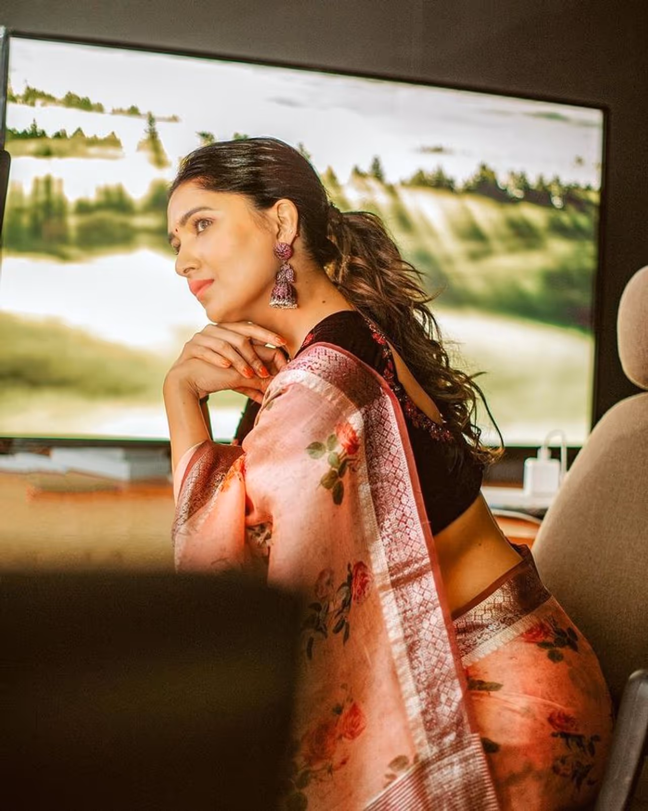 ஒருபக்கம் நடிப்பில் படு பிசியாக நடித்து வந்தாலும், மற்றொரு பக்கம்... விதவிதமாக போட்டோ ஷூட் புகைப்படங்கள் வெளியிட்டு வியக்க வைக்கிறார். அந்த வகையில் அழகிய சேலையில் சிறகடிக்கும் பட்டாம்பூச்சி போல், இவர் வெளியிட்டுள்ள புகைப்படம் ரசிகர்களால் அதிகம் ரசிக்கப்பட்டு வருகிறது.