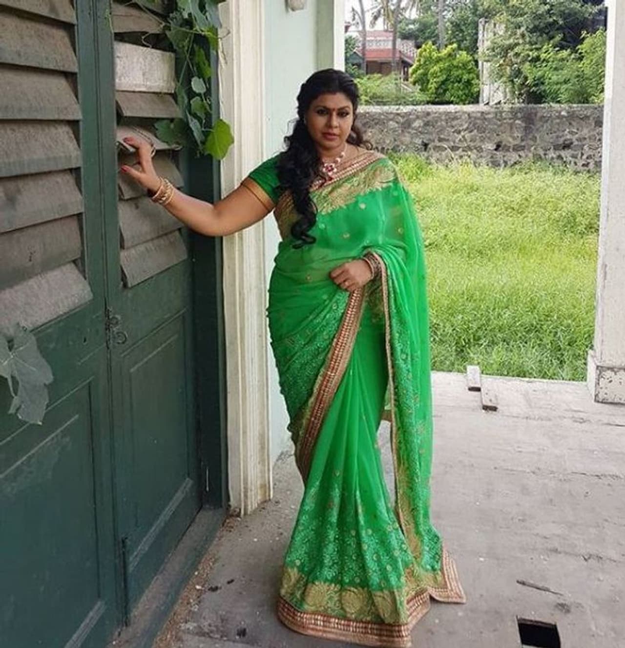 <p>பச்சை நிற சேலையில் படு ஜோராக போஸ் கொடுக்கும் விசித்ரா </p>