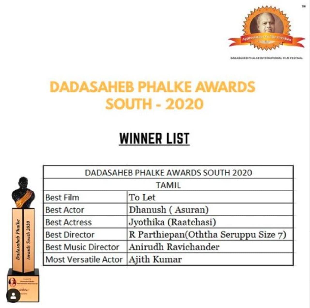 - அஜித், தனுஷ், ஜோதிகா, பார்த்திபனுக்கு தாதாசாகேப் பால்கே விருது... உற்சாகத்தில் ரசிகர்கள்...!