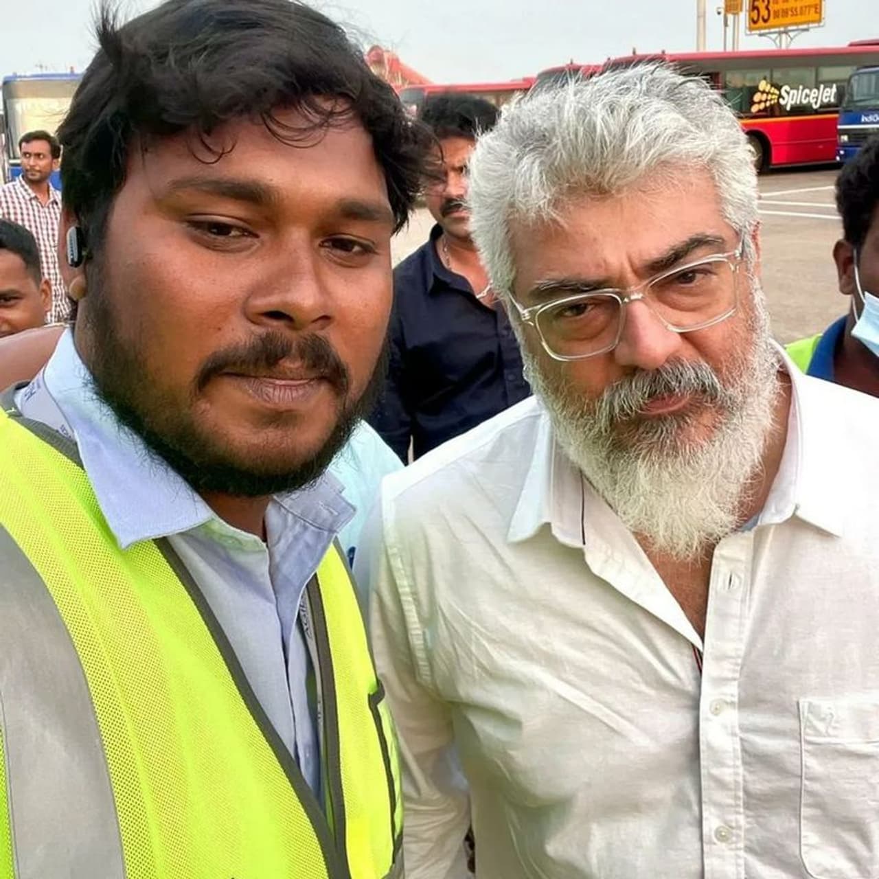 அஜித்துடன் சில ஏர்போர்ட் ஊழியர்கள், புகைப்படம் எடுத்து கொள்ள ஆசைப்பட்ட நிலையில், அஜித் அவர்களது ஆசையை நிறைவேற்றும் விதமாக புகைப்படங்களை எடுத்துக்கொண்டுள்ளார்.