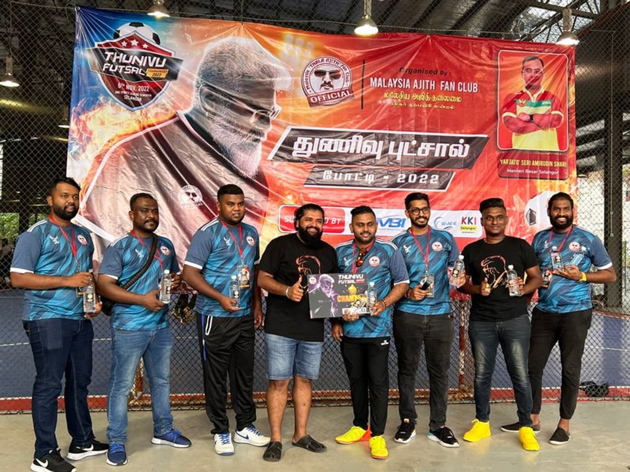 மலேசியன் அஜித் ஃபேன்ஸ் கிளப் ரசிகர்கள், துணிவு புட்சால் என்கிற புட்பால் போட்டி ஒன்றை நடத்தி, துணிவு படத்திற்கு வித்தியாசமாக புரமோஷன் செய்துள்ளனர். இது குறித்த புகைப்படங்கள் தற்போது சமூக வலைதளத்தில் வெளியாகி அஜித் ரசிகர்கள் மத்தியில் வைரலாக பார்க்கப்பட்டு லைக்குகளை குவித்து வருகிறது.