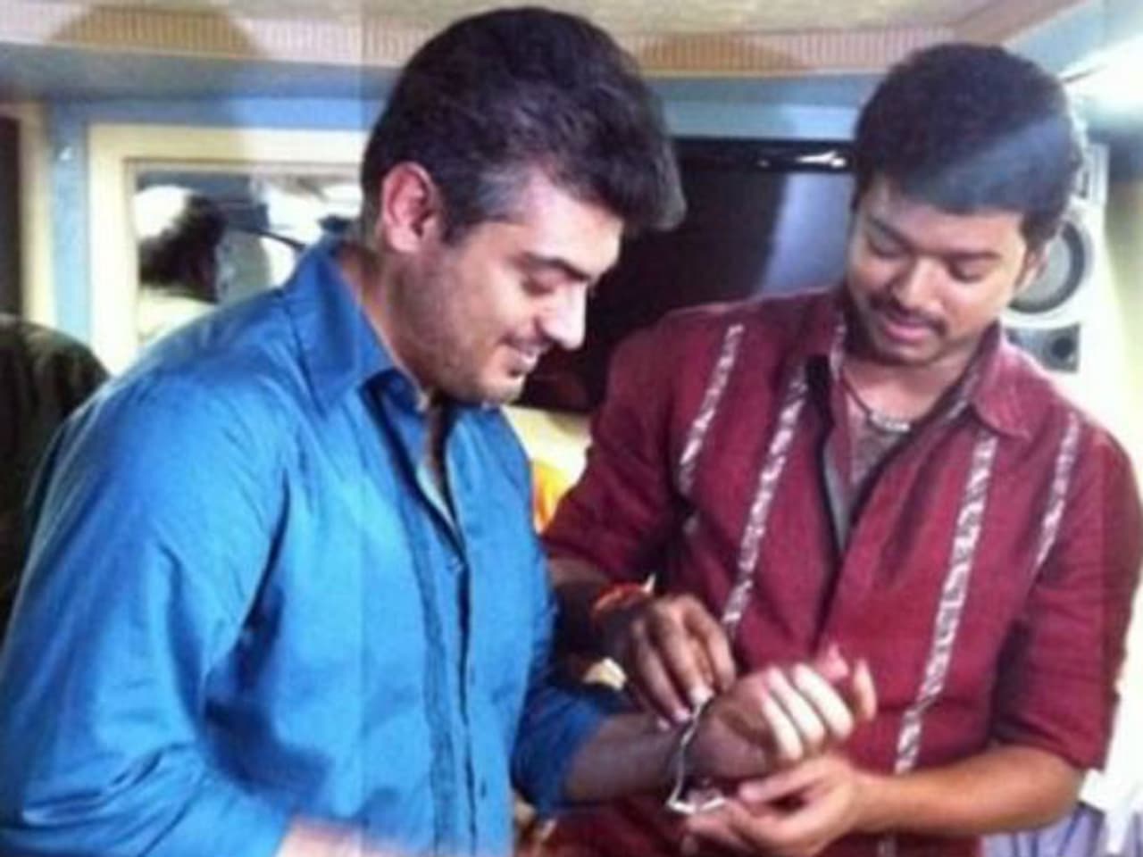 அஜித்தும், விஜய்யும் தமிழ் சினிமாவில் முன்னணி நடிகர்களாக வலம் வருகின்றனர். இவர்கள் இருவருக்கும் கோடிக்கணக்கான ரசிகர்கள் உள்ளனர். அஜித் - விஜய் இருவரும் நெருங்கிய நண்பர்களாக இருந்தாலும், அவர்களது ரசிகர்கள் எலியும், பூனையுமாக சண்டையிட்டுக் கொள்வதை வழக்கமாக வைத்துள்ளனர். இருதரப்பு ரசிகர்களின் டுவிட்டர் மோதல்களே அதற்கு சாட்சி.