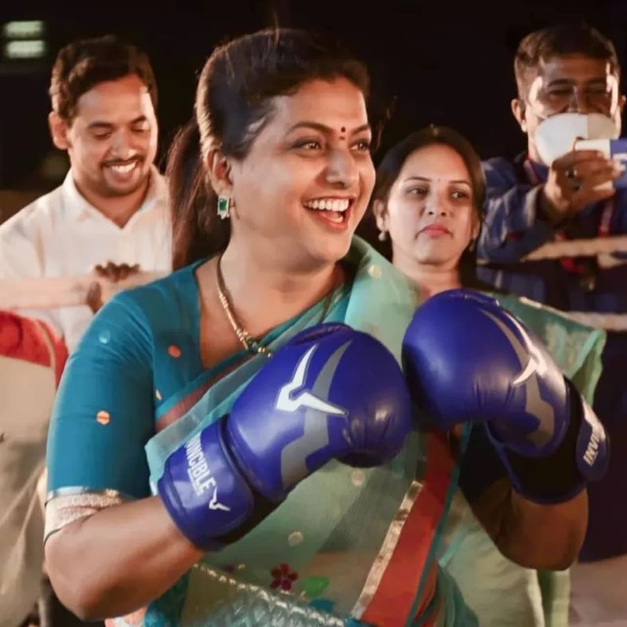 ஏதேனும் கலை நிகழ்ச்சியை தொடங்கி வைக்க சென்றால் அங்குள்ளவர்களுடன் சேர்ந்து நடனமாடுவது என மக்களோடு மக்களாக பழகி வரும் ரோஜா, சமீபத்தில் விசாகப்பட்டினத்தில் நடைபெற்ற பாக்ஸிங் போட்டியை தொடங்கி வைக்க சென்றிருந்தார்.