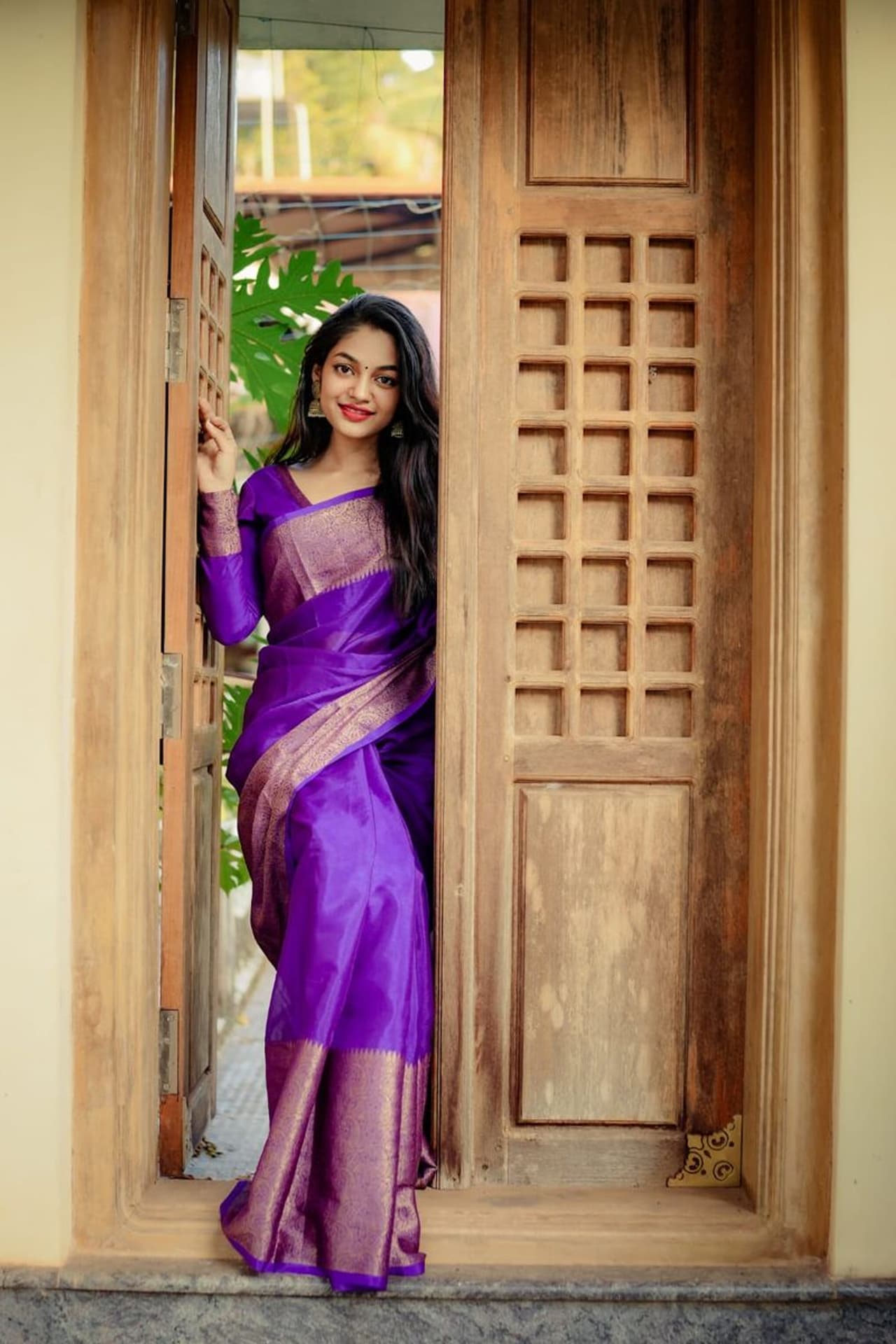 இந்த படத்தை தொடர்ந்து, சிவகார்த்திகேயன் நடித்த 'ஹீரோ' படத்தில் நடித்திருந்த இவானாவுக்கு, திரையுலக வாழ்க்கையில் மிகப்பெரிய திருப்புமுனையை ஏற்படுத்தியுள்ளது... 'லவ் டுடே' தீரைப்படத்தின் வெற்றி. தொடர்ந்து பட வாய்ப்புகளை கைப்பற்ற முயற்சி மேற்கொண்டு வரும் இவர், அழகில் அட்ராசிட்டி செய்யும் பட்டு சேலையில் தேவதை போல் ஜொலிக்கும் சில புகைப்படங்களை வெளியிட்டுள்ளார். ஊதா நிற பட்டு புடவையில் இவர் வெளியிட்டுள்ள லேட்டஸ்ட் புகைப்படங்கள் ரசிகர்கள் மத்தியில் அதிகம் பார்க்கப்பட்டு லைக்குகளை குவித்து வருகிறது.