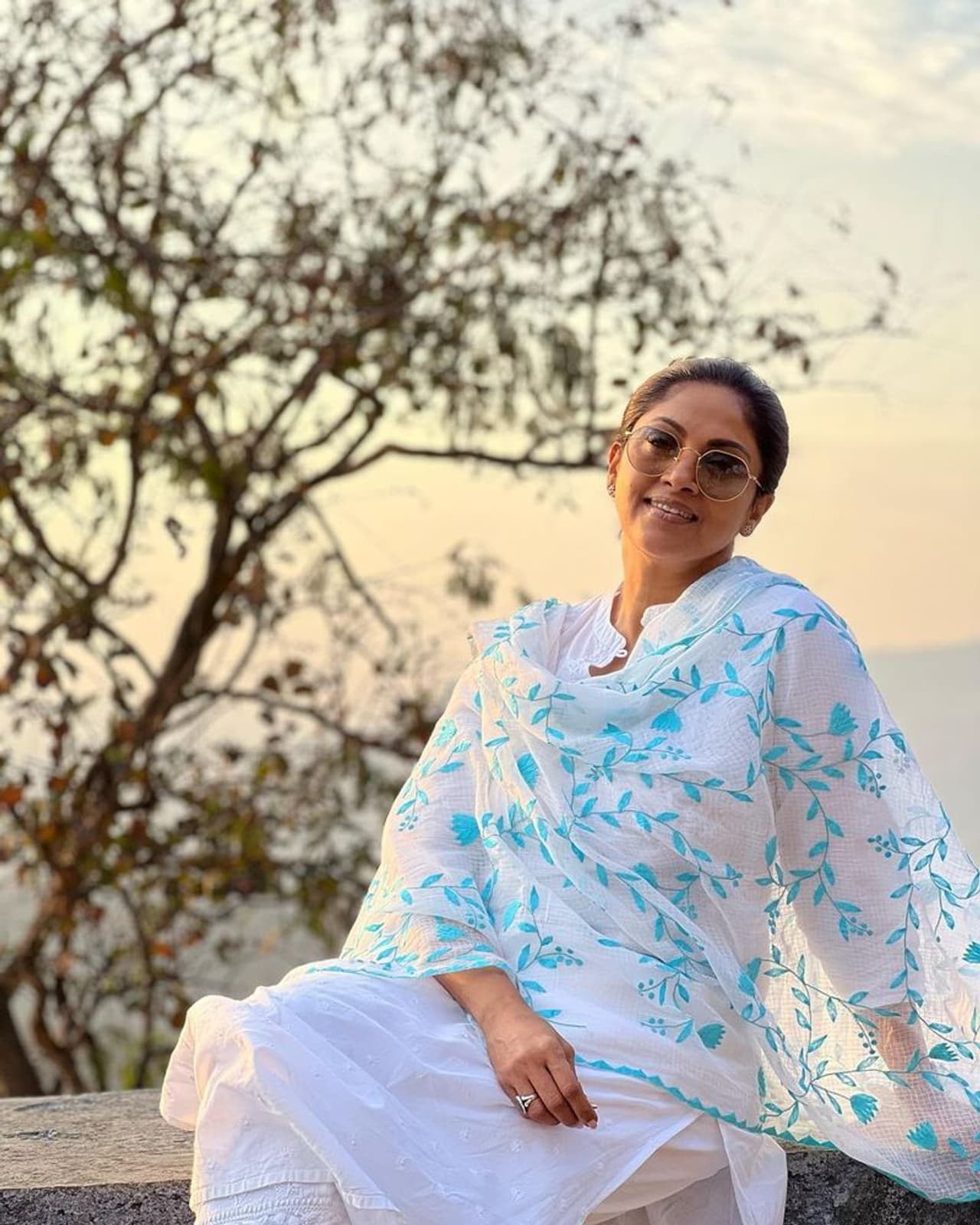 நடிகை நதியா வெள்ளை நிற சல்வாரில்... சன் செட் முன்பு எடுத்து கொண்ட புகைப்படங்கள் சிலவற்றை தன்னுடைய இன்ஸ்டாகிராம் பக்கத்தில் வெளியிட வைரலாக பார்க்கப்பட்டு லைக்குகளை குவித்து வருகிறது.