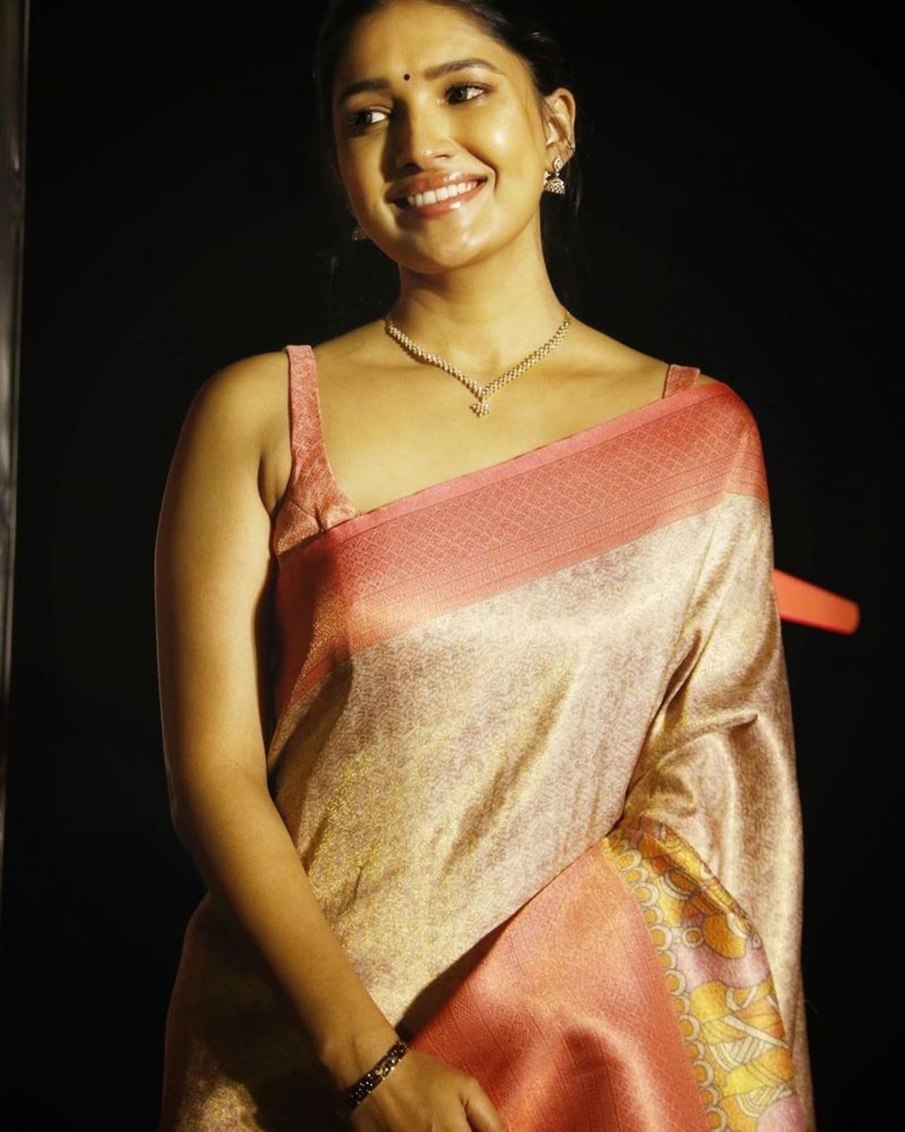 கதாநாயகியாக மட்டுமே நடிப்பேன் என அடம்பிடிக்காமல், சில அழுத்தமான கதாபாத்திரங்களையும் தேர்வு செய்து நடித்து வருகிறார் வாணி போஜன், அவ்வப்போது, தன்னுடைய கலர் ஃபுல் போட்டோ ஷூட் புகைப்படங்களை வெளியிட்டு ரசிகர்களை பரவசப்படுத்துகிறார். அந்த வகையில் ஸ்லீவ் லெஸ் ஜாக்கெட் அணிந்து, பட்டு புடவையில், அழகு பதுமை போல்... மிளிரும் இவரது லேட்டஸ்ட் புகைப்படங்கள் சில வைரலாகி வருகிறது.