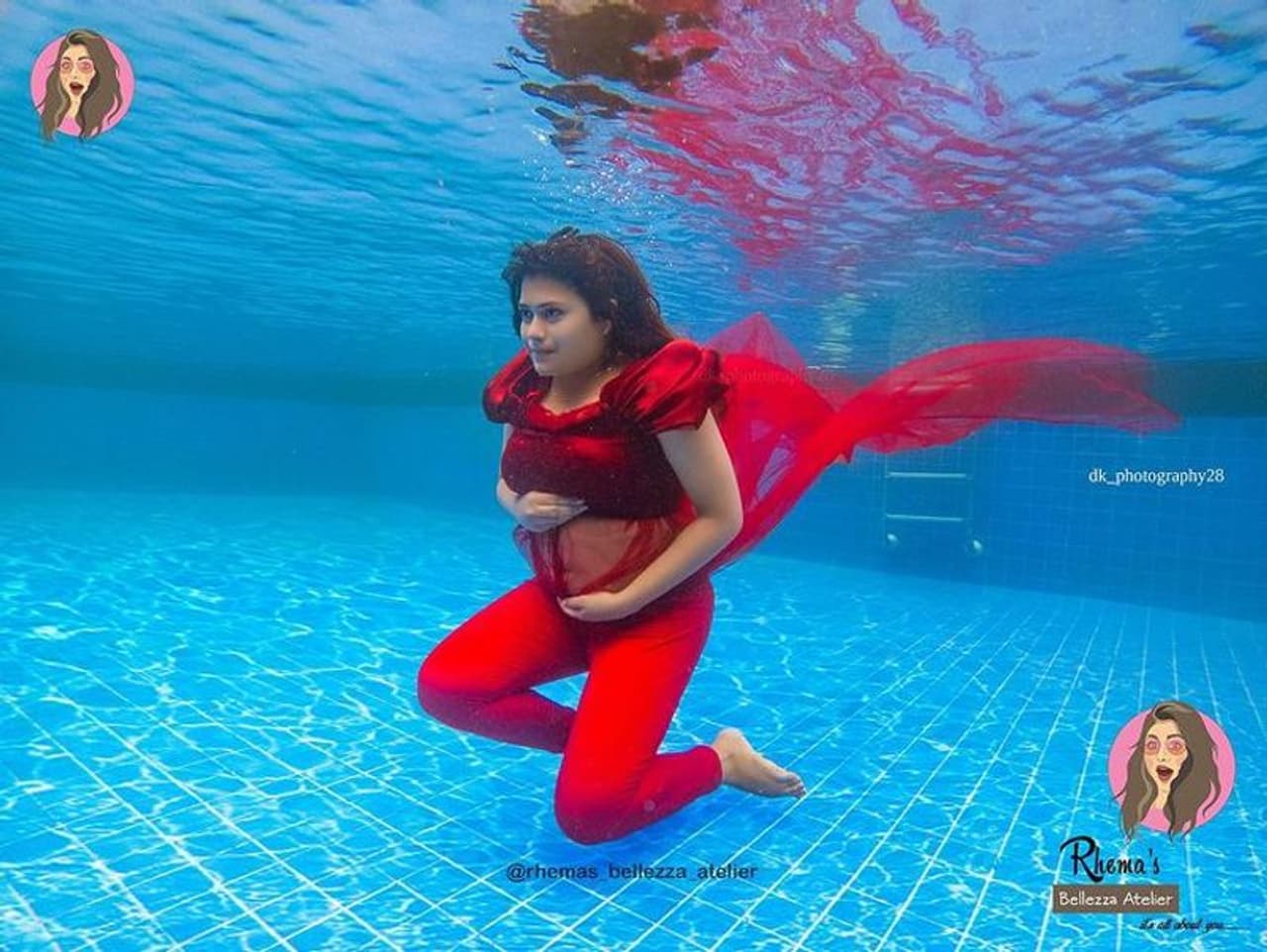 இதற்க்கு பரீனாவும் பதிலடி கொடுத்தார். எப்போதுமே ஏதேனும் வித்தியாசமாக செய்து தன்னுடைய கற்பகாலத்தை சிறப்பித்து வரும் ஃபரினா... ரெட் கலர் உடையில் அண்டர் வாட்டர் போட்டோ ஷூட் எடுத்துள்ளார். இந்த புகைப்படங்கள் தற்போது ரசிகர்கள் மத்தியில் வைரலாக பார்க்கப்பட்டு வருகிறது.