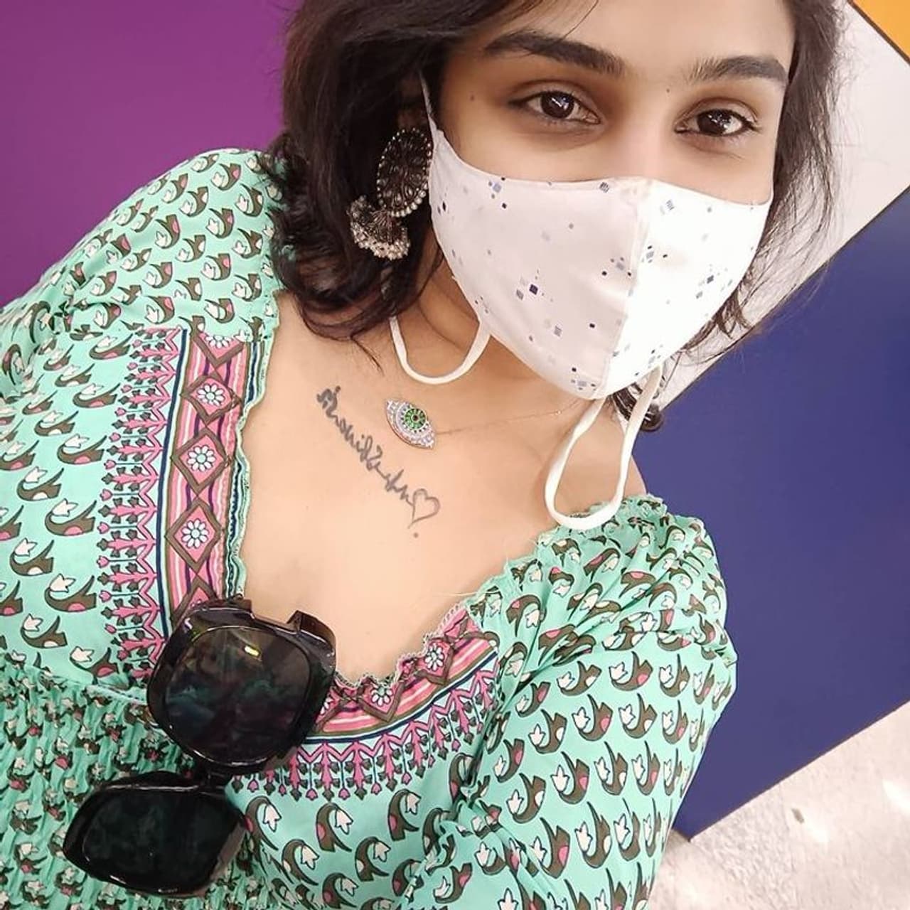 இந்த பென்டென்ட் தெரியும்படி விதவிதமாக போஸ் கொடுத்து இவர் வெளியிட்டுள்ள புகைப்படங்கள் வைரலாக பார்க்கப்பட்டு வருவதோடு நெட்டிசன்களையும் பிரமிக்க வைத்துள்ளது.