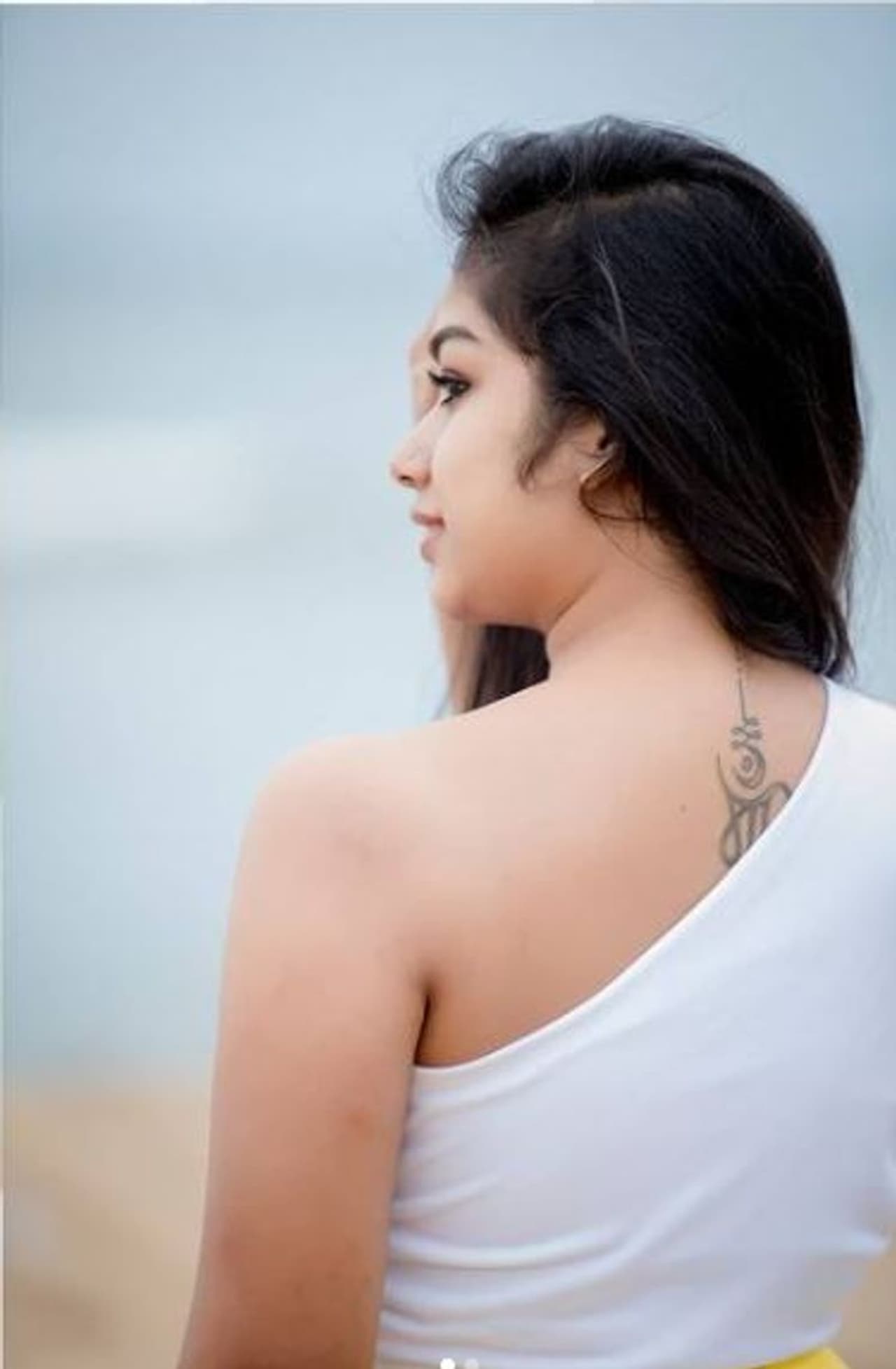 முதுகில் குத்தப்பட்ட டாட்டூவை பளீச் என காட்டிய ப்ரீத்தி சர்மா