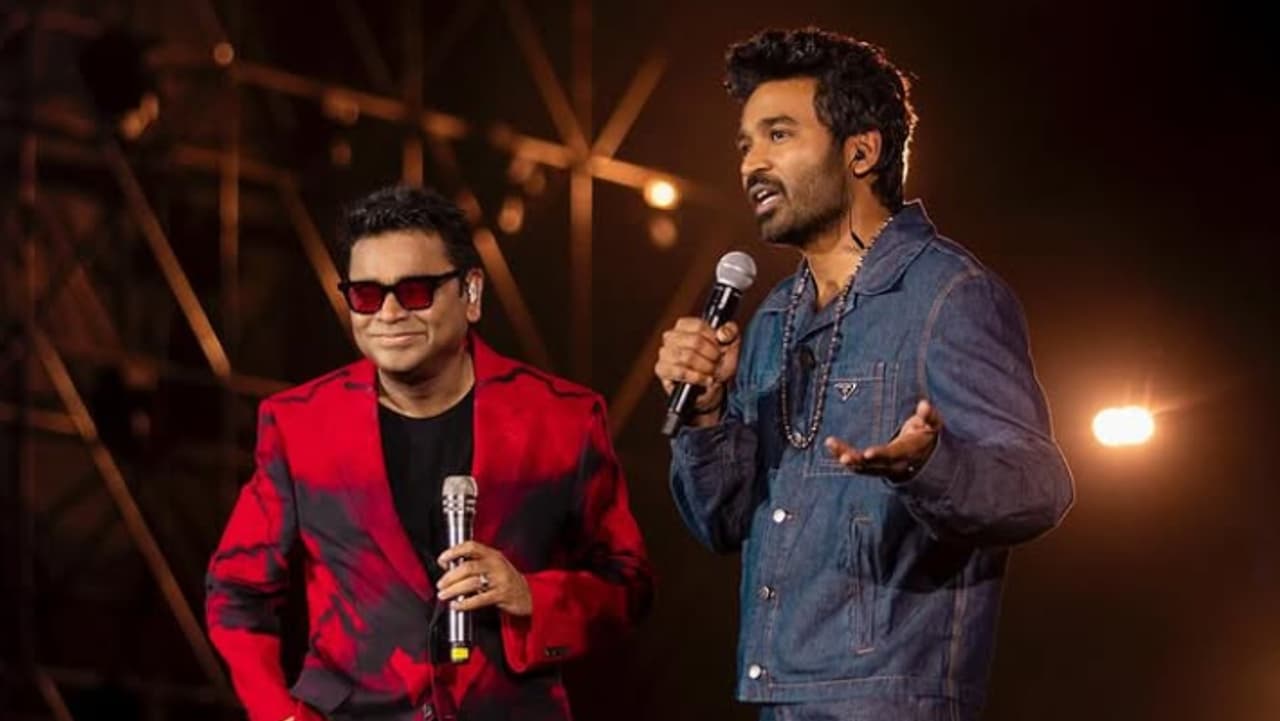 Dhanush Sing a Song in AR Rahman Concert : இசைப்புயல் ஏ.ஆர்.ரகுமான் 30 ஆண்டுகளுக்கு மேலாக தன்னுடைய இசையால் ரசிகர்களை கட்டிப்போட்டு வைத்துள்ளார். இவர் தமிழ் மட்டுமின்றி தெலுங்கு, இந்தி, கன்னடம், மலையாளம் என பல்வேறு மொழி படங்களுக்கும் இசையமைத்துள்ளார். இதனால் நாடு முழுவதும் இவரது பாடல்களுக்கு ரசிகர்கள் இருக்கிறார்கள். படங்களுக்கு இசையமைப்பது மட்டுமின்றி உலகமெங்கும் ஏராளமான இசை நிகழ்ச்சிகளையும் தொடர்ந்து நடத்தி வருகிறார் ஏ.ஆர்.ரகுமான்.