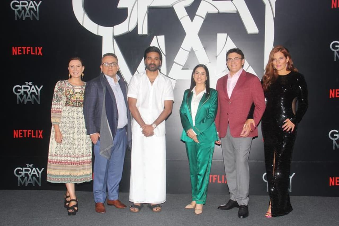 இதை தொடர்ந்து இன்று மும்பையில் நடந்த 'தி கிரே மேன்' படத்தின் ப்ரீமியர் ஷோவிலும் நடிகர் தனுஷ், படத்தின் இயக்குனர்களான ரூசோ பிரதர்ஸ் மற்றும் இந்த படத்தில் நடிக்க முக்கிய நடிகர் நடிகைகள் சிலர் பங்கேற்றுள்ளார்.